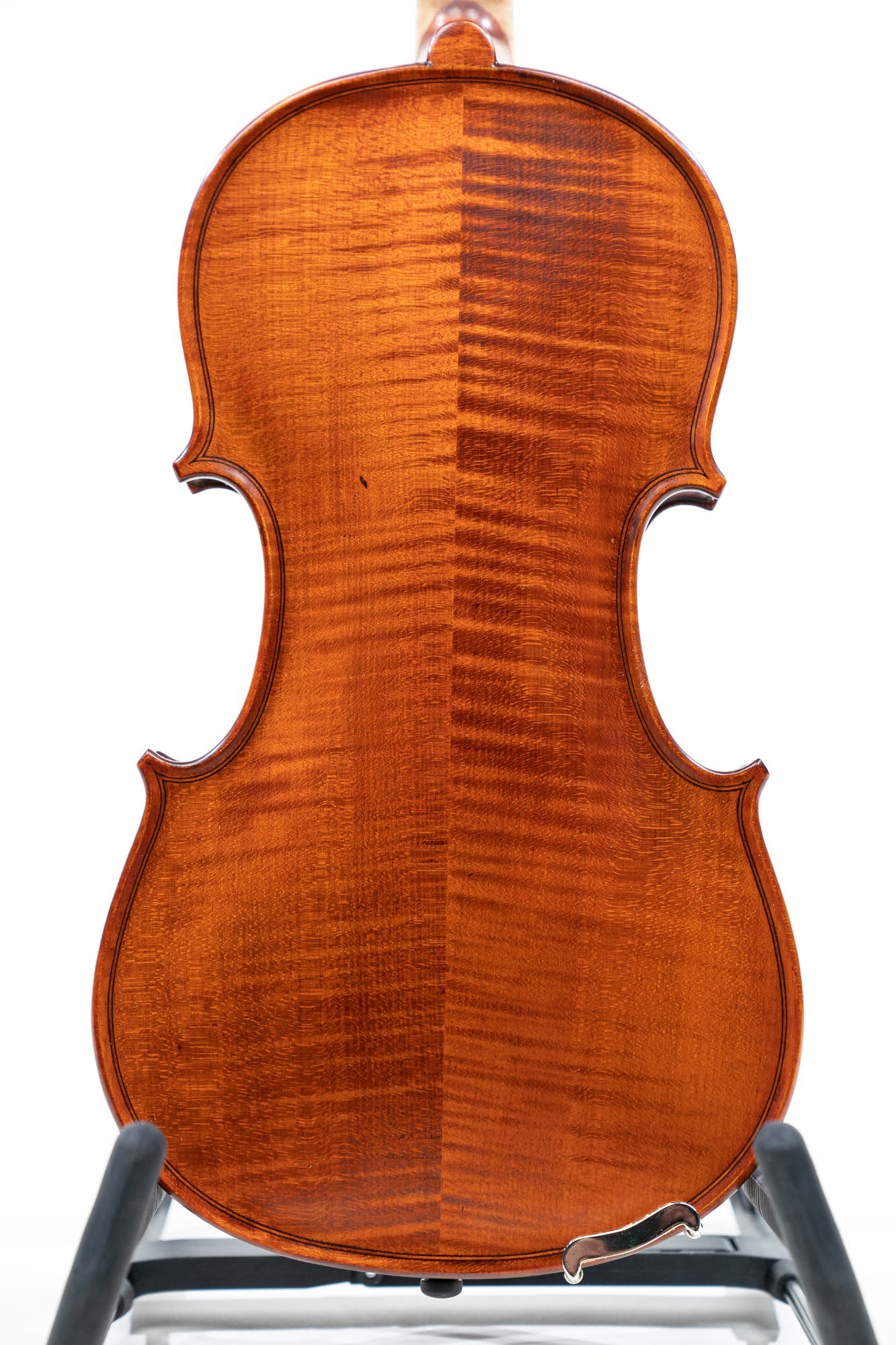 Handcrafted in workshops directly supervised by Mr Vasile Gliga. Highly flamed and naturally aged sycamore maple employed for back, neck and ribs. Close grained Carpatian resonance spruce top. The outline of the instrument's body is deepened and the plates are precisely graduated. Special attention has been given to the deeply etched and well highlighted scroll.