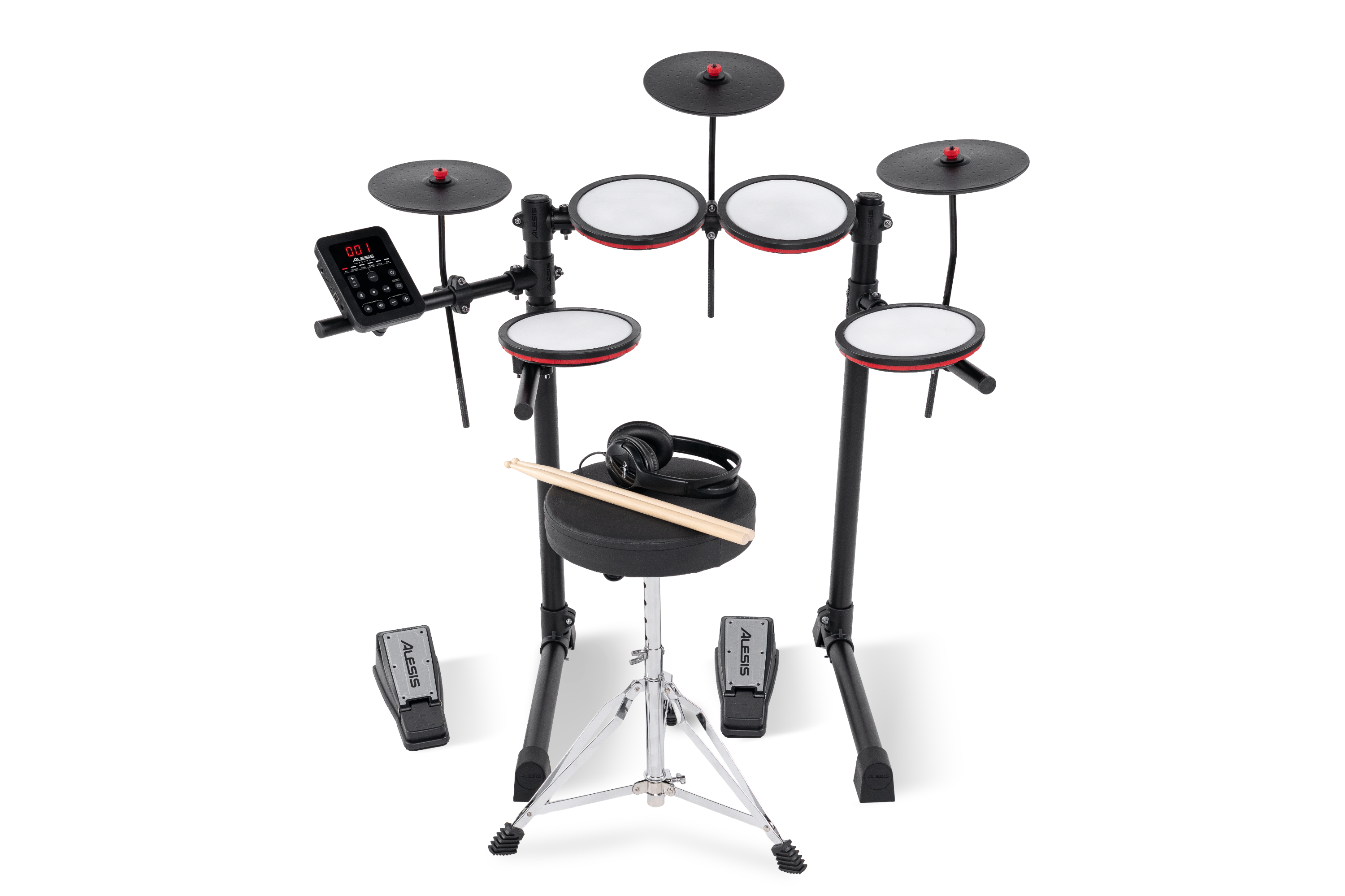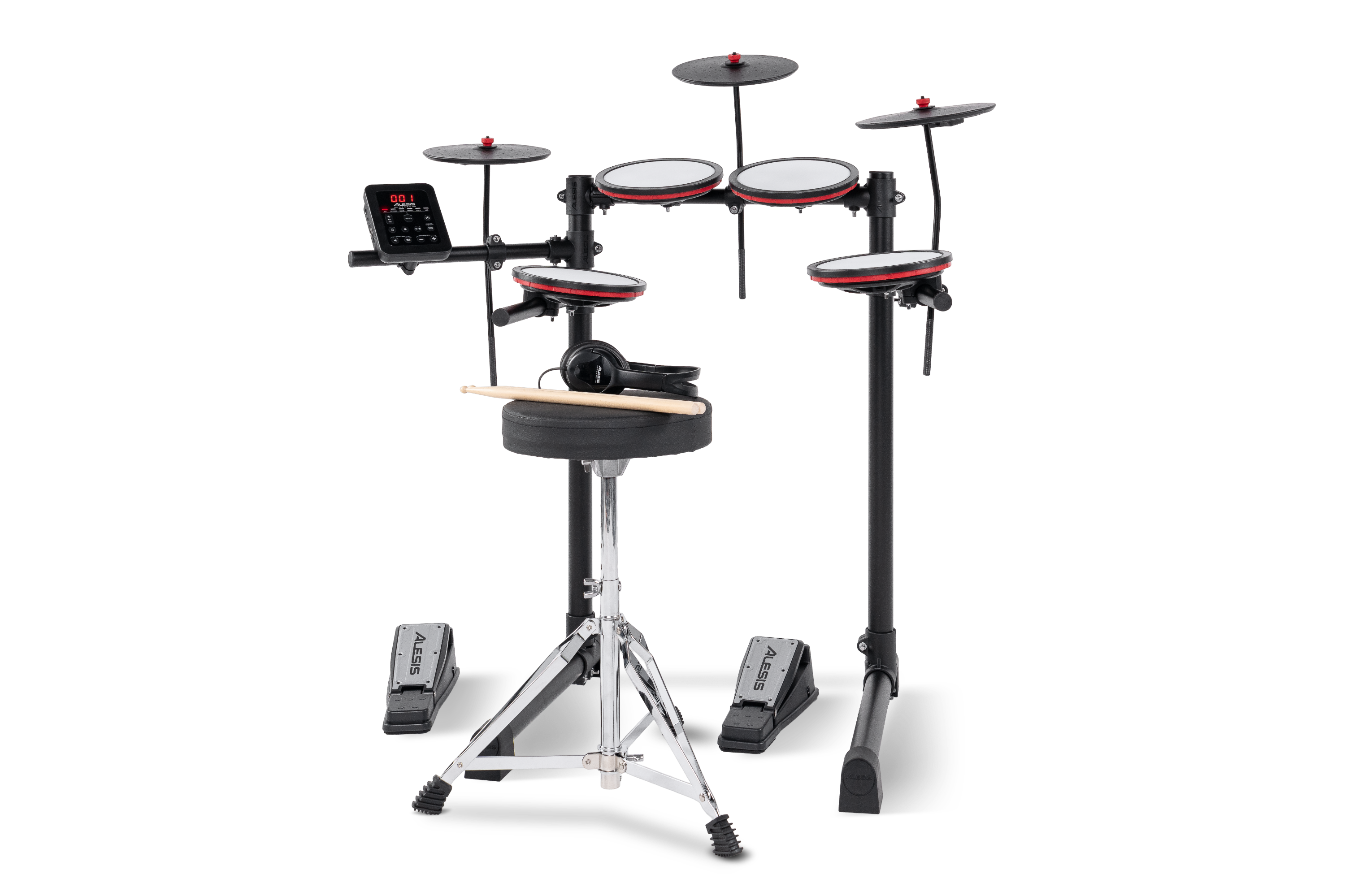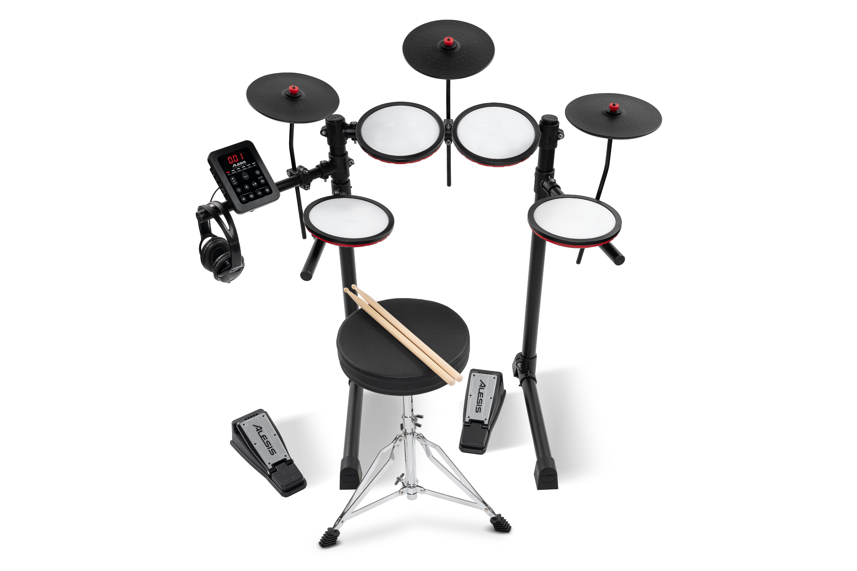 The Alesis Turbo Max is a beginner-friendly, all-in-one electronic drum kit for aspiring drummers of any age. This seven-piece kit is approachable enough for younger players learning their first musical instrument, yet full-featured for hobbyist adult players seeking a space-saving option for practice and skill development.