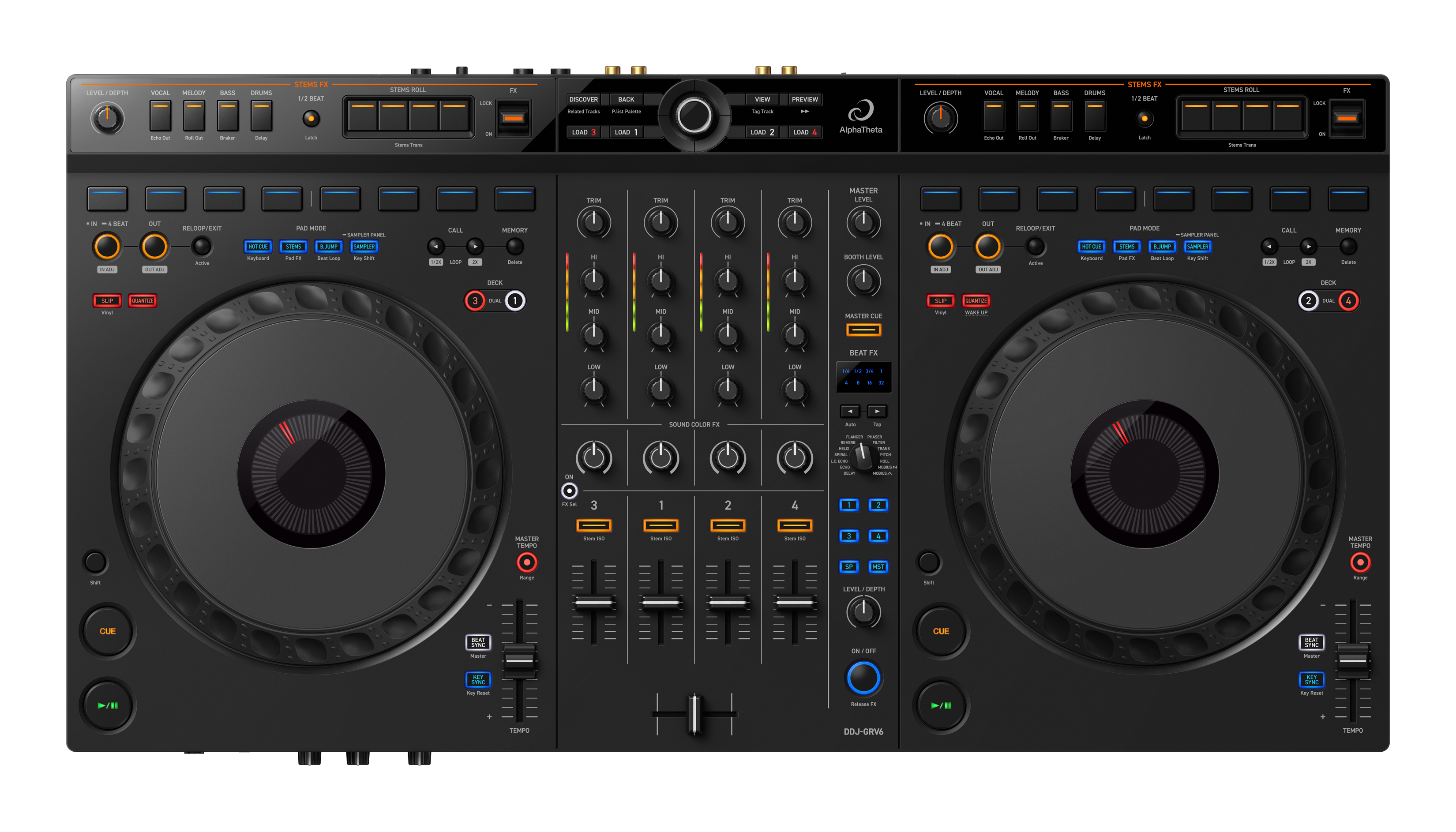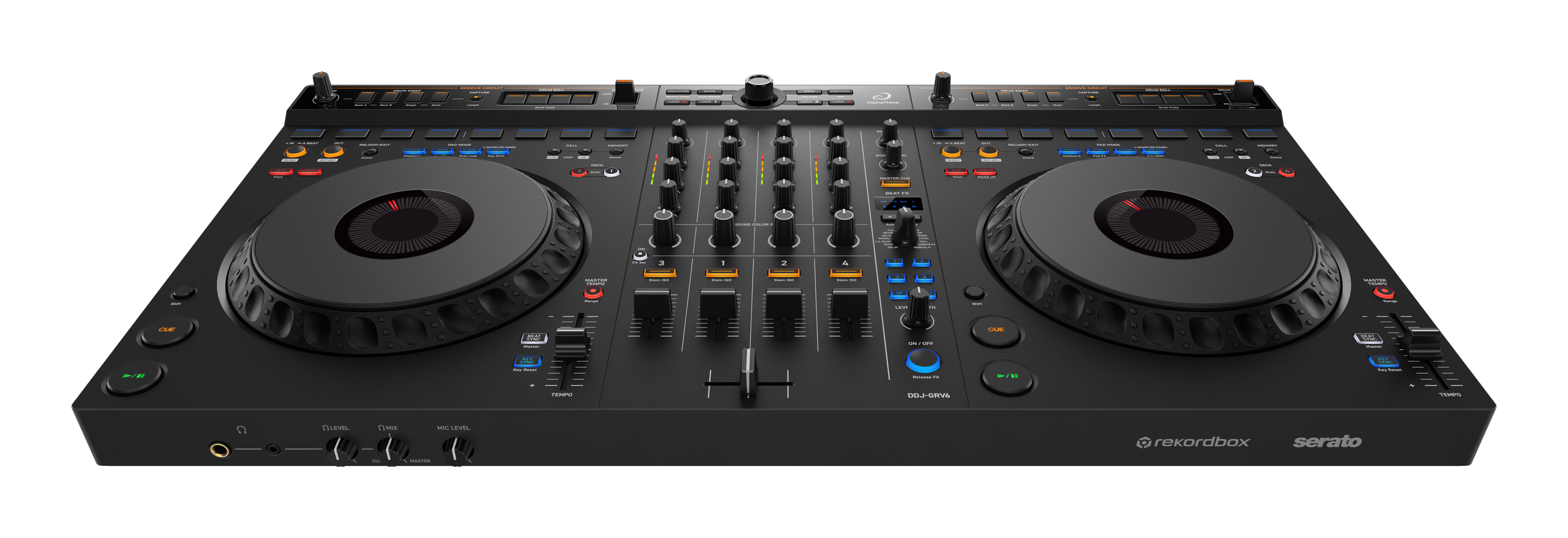 Introducing the DDJ-GRV6, a cutting-edge 4-channel DJ controller that elevates your creative potential. With the new innovative Groove Circuit, you can freely manipulate drum parts and craft original remixes like never before. Designed with a CDJ + DJM-style layout in mind, it ensures a seamless, professional feel.