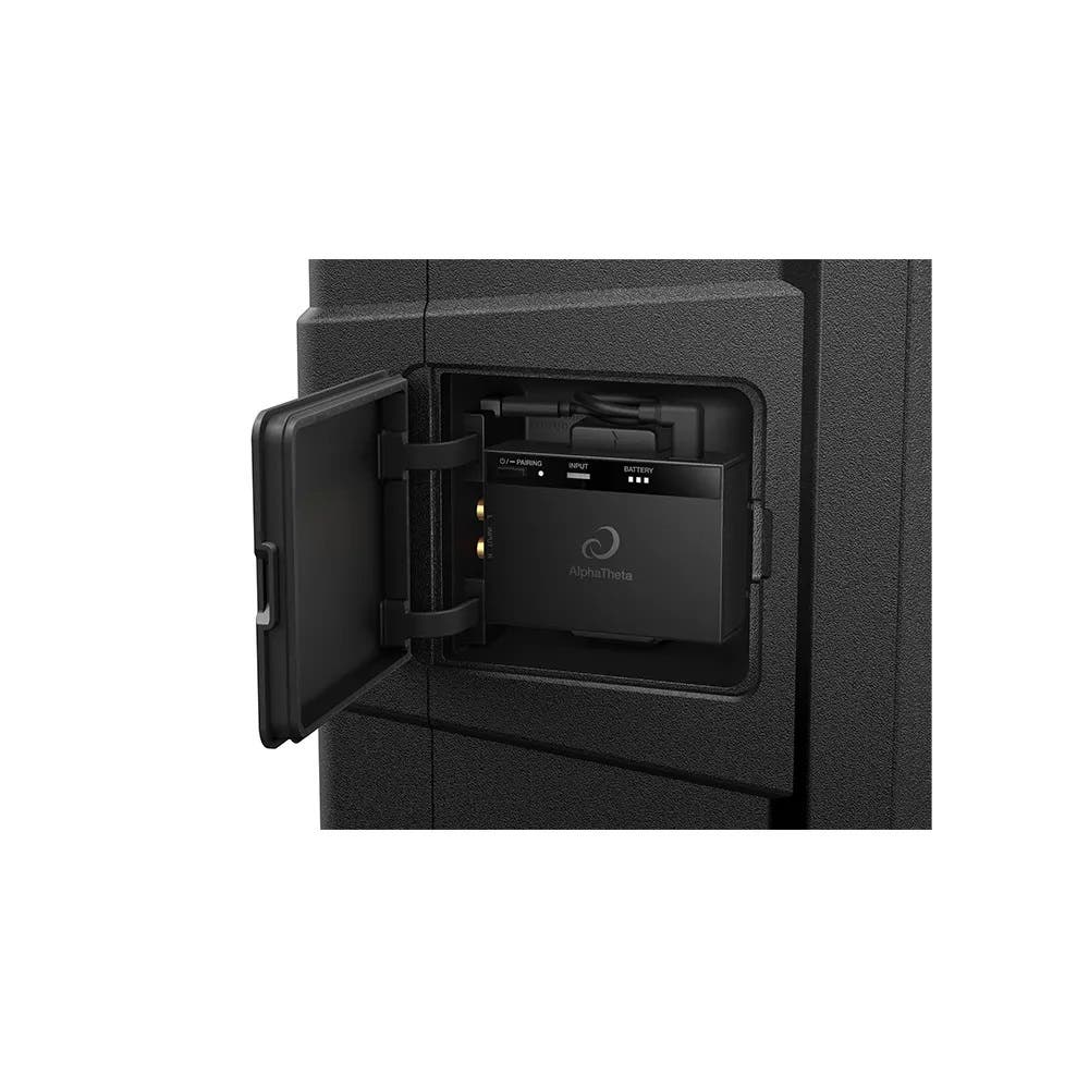 Faster and easier Cable-free DJing without sound delays is now possible with the WAVE-EIGHT thanks to SonicLink. This new ultra-low-latency technology wirelessly transmits audio much faster than a Bluetooth connection so only a fraction of a second passes between pressing play on the decks and hearing the track through the speakers, which lets you mix without missing a beat. Take the included transmitter out of its storage compartment on the WAVE-EIGHT and connect it to your DJ gear, and you can instantly create a wireless connection, enabling you to throw a DJ party anywhere you want. And if you combine the WAVE-EIGHT with the new OMNIS-DUO portable all-in-one DJ system, which features battery power, you can play cable-free for total freedom.