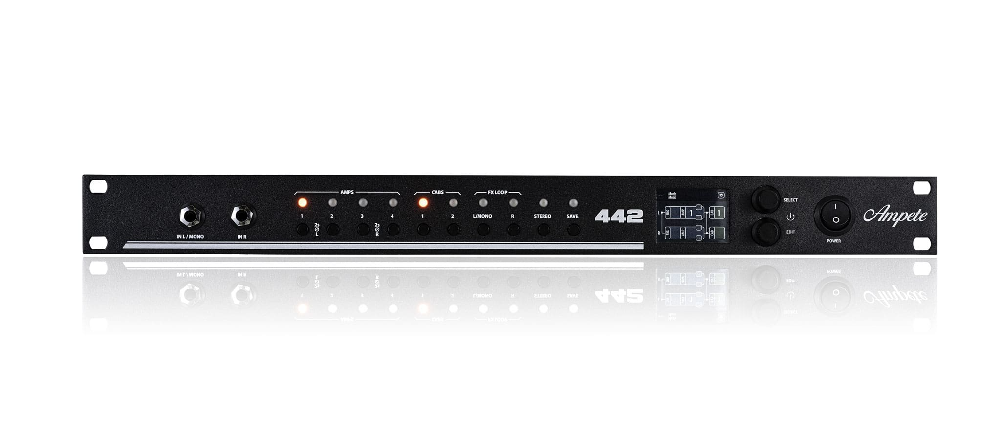 The Ampete Engineering 442 is the first of a new generation of switchers. Offering unparalleled amplifier, effects loop and speaker cabinet switching flexibility in a single rack space. 442 features mono, dual mono, true stereo, wet/dry/wet operation, and WIFI connectivity, all monitored on a brand new integrated TFT Screen and controlled either natively or remotely. Whether you’re a professional musician, amp collector, studio engineer, or just a tone enthusiast, the 442 delivers unparalleled performance in a safe, noise-free, reliable package perfect for your rig.