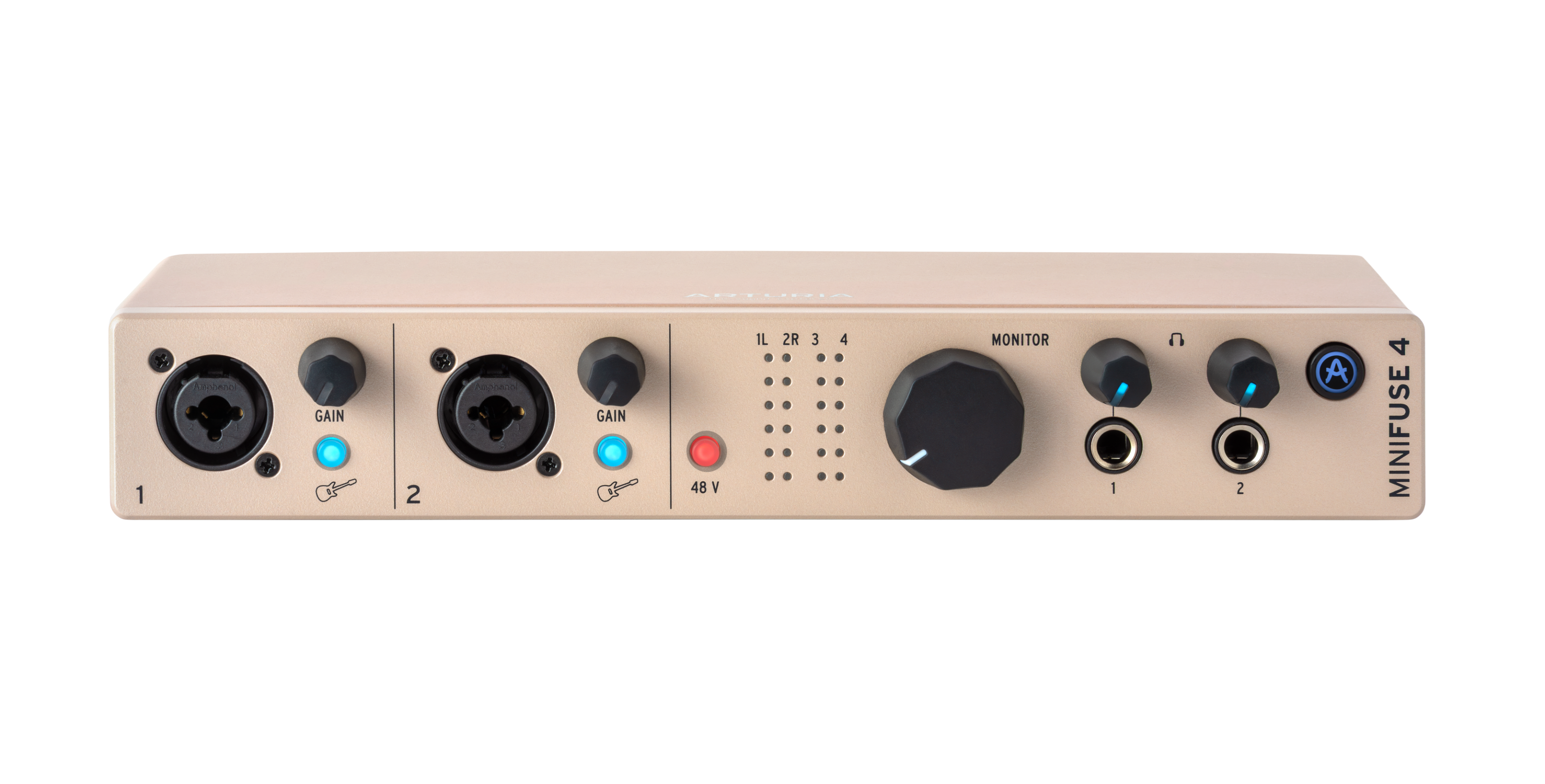 The MiniFuse 4 Champagne is a compact USB audio interface that lets you easily record instruments, vocals, and application audio with professional sound quality and a fresh limited-edition finish, backed by a 5-year warranty.
