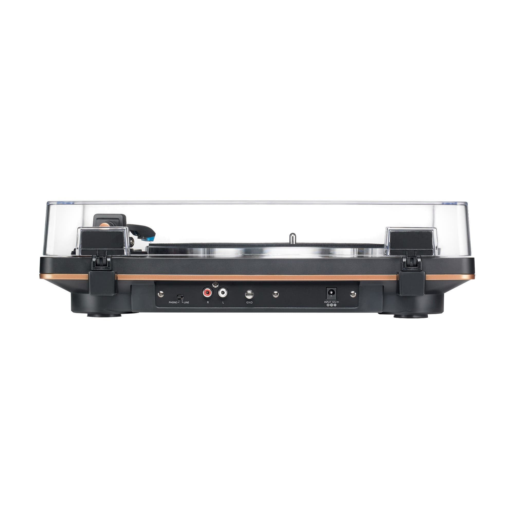 Fully automatic belt-drive turntable operation with two speeds: 33-1/3, 45 RPM A fixed-body AT-VM95C Integral Dual Moving Magnet™ phono cartridge is compatible with any VM95 Series replacement stylus, offering a wide choice of options for every budget and application Stylish three-piece chassis construction dampens resonance for improved sound quality* J-shaped tonearm is engineered to minimize tracking errors Tonearm lock reduces risk of stylus damage Built-in switchable phono/line pre-amplifier Anti-resonance, die-cast aluminum platter with felt mat AC adapter handles AC/DC conversion outside of the chassis, reducing noise in the signal chain Includes detachable RCA output cable (dual RCA male to dual RCA male with ground), 45 RPM adapter, and removable hinged dust cover Available in Black/Bronze *Compared to AT-LP60X.