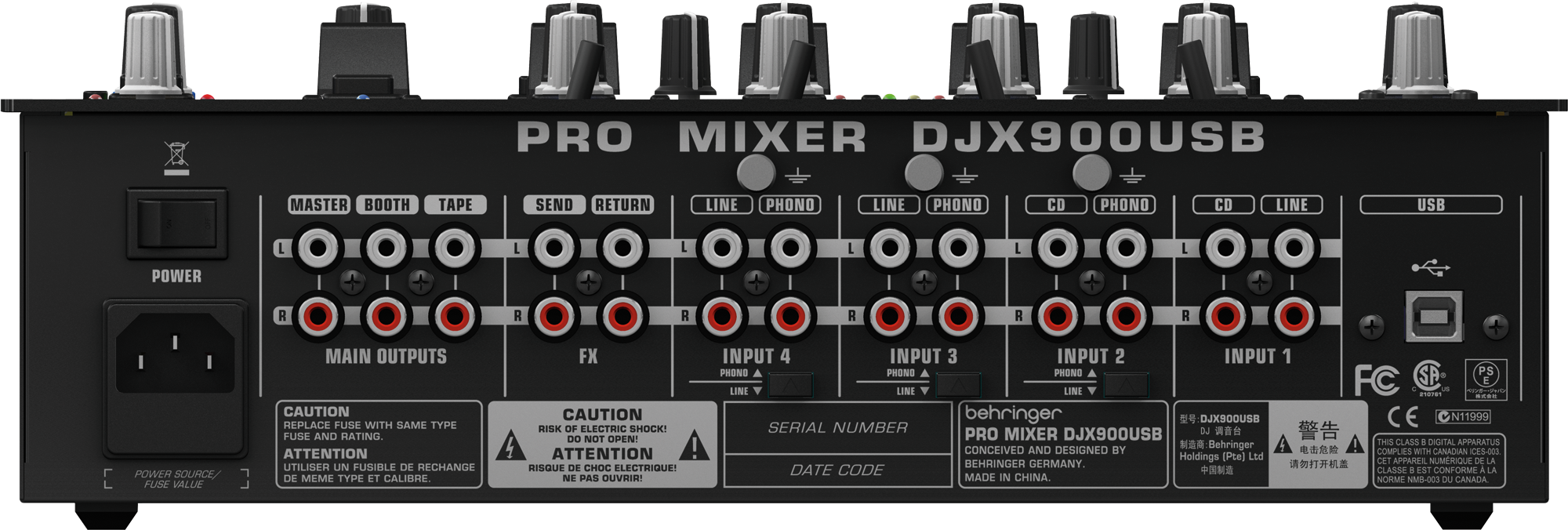 Live Large with More Mediums! If it can be clicked, spun or spoken, the DJX900USB can mix it! You get 2 dual-stereo Phono/Line channels, 1 Phono/CD channel and 1 Line/CD/USB channel – plus a dedicated Mic channel with Mic On button and Talk level control. All channels feature independent Gain controls and 3-band EQs – full Kill on channels 1 - 4, which also provide 10-LED metering. The DJX900USB also has enough built-in phono preamps to handle up to 3 turntables, and the built-in USB/audio interface gives you instant access to your computer’s digital music library.
