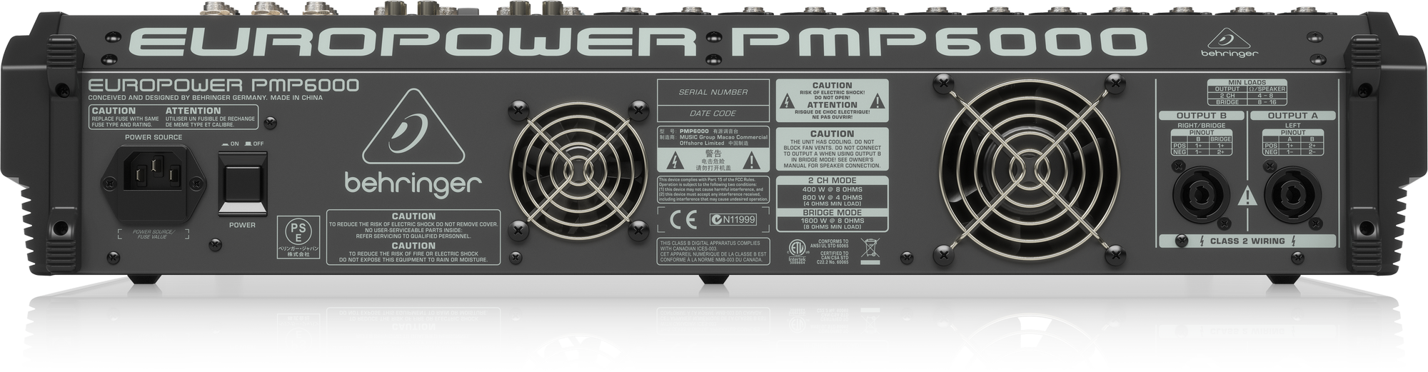 All-In-One Solution The powerful PMP6000 gives you the choice of 2 x 800-Watt stereo or 2 x 800-Watt dual mono mode (Mains powered output, 1 Monitor send signals through the second powered input) or 1,600-Watt bridged mono sound. Whether the center of attention happens to be a folk trio, a speech, or a synth-rock band with mind boggling stereo patches, the PMP6000 can accommodate with ease. This sonic versatility also makes it an excellent choice for churches where vocals and stereo recordings often share face time. * This product is covered by 1-year warranty, with extension to 3-year warranty upon registration of the product at behringer.com within 90 days of purchase.