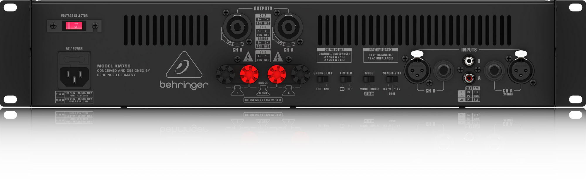 Behringer KM750 750-watt Stereo Power Amplifier Features: