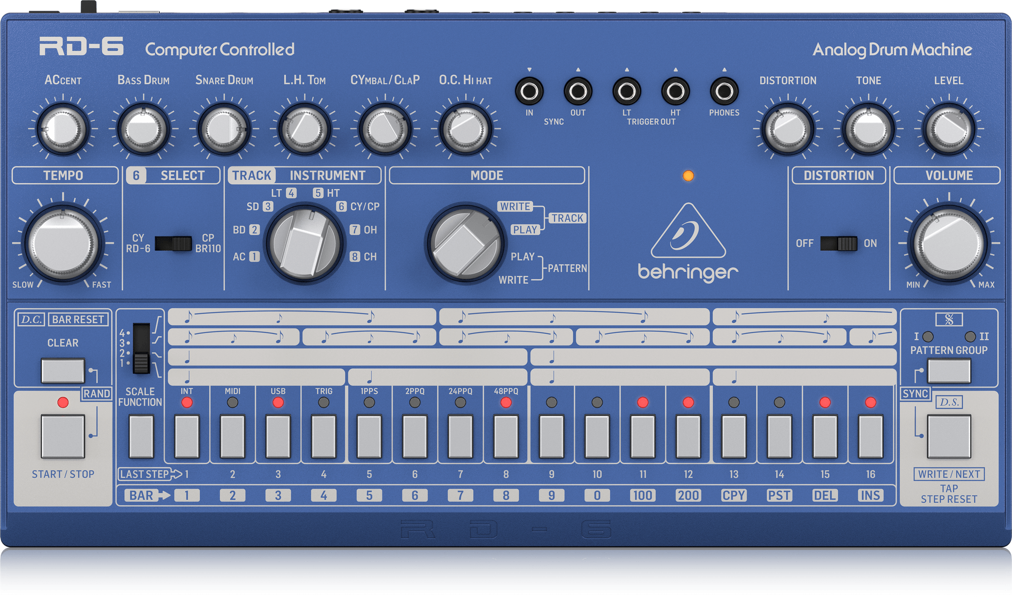 • 16 authentic-style step buttons with LED indicators for easy pattern creation