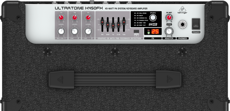 The ULTRATONE K450FX specializes in clean, powerful sound. With this 45-Watt workhorse in your rig, your keyboards will sound their best gig after gig.