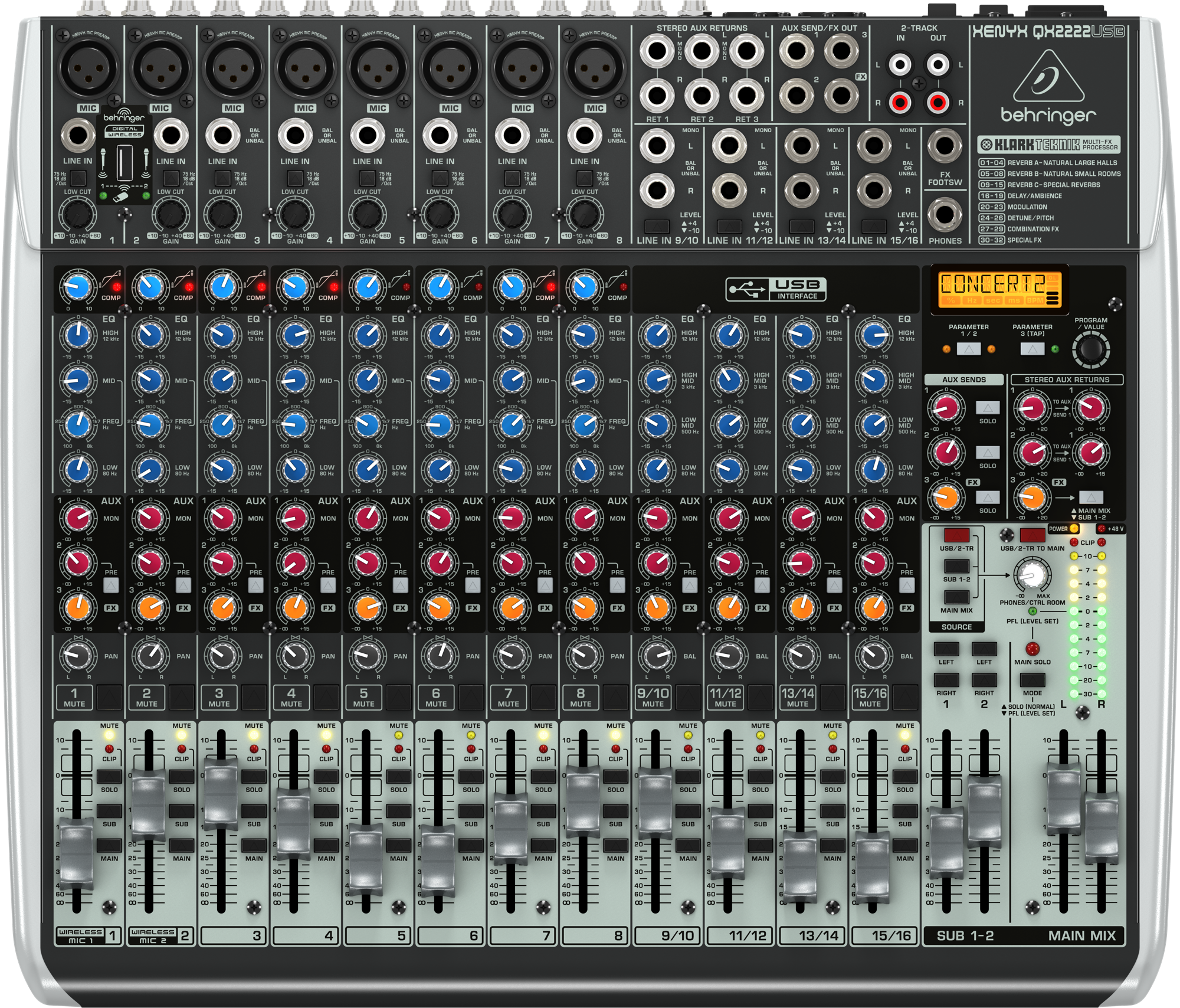 Premium 22-Input 2/2-Bus Mixer with XENYX Mic Preamps & Compressors, KLARK TEKNIK Multi-FX Processor, Wireless Option and USB/Audio Interface