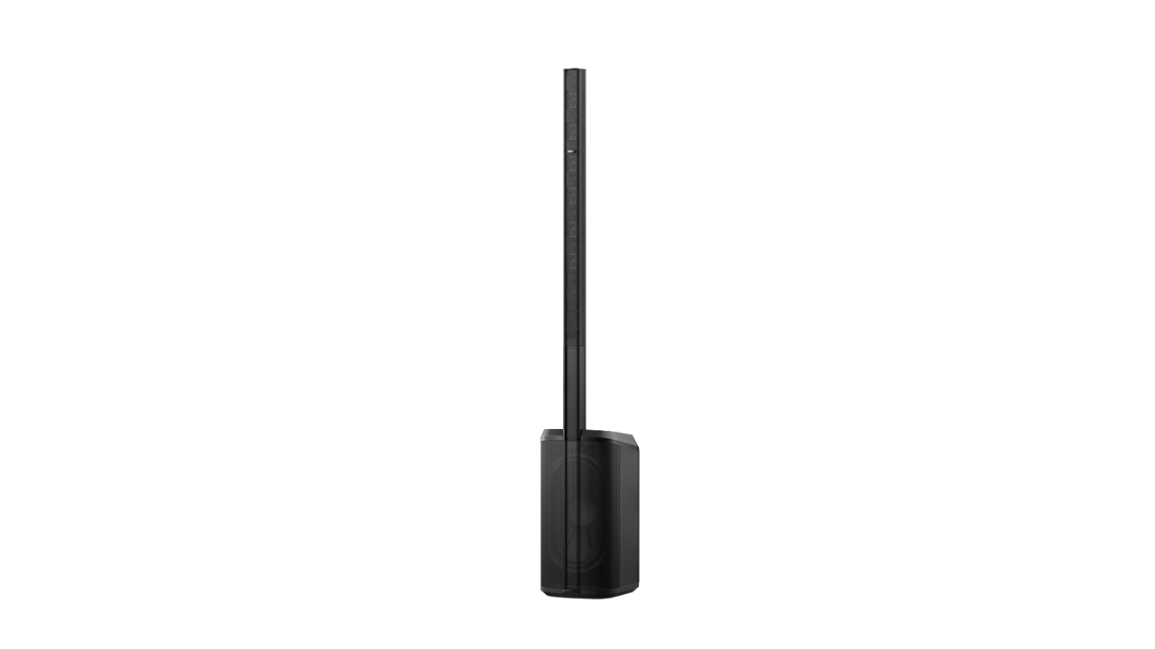 J-shaped line array featuring 16 articulated 2” neodymium drivers; 180-degree horizontal coverage, tight vertical control on top, wide dispersion on the bottom to cover audiences whether set up on the floor or an elevated stage, even off to the extreme sides in medium to large venues