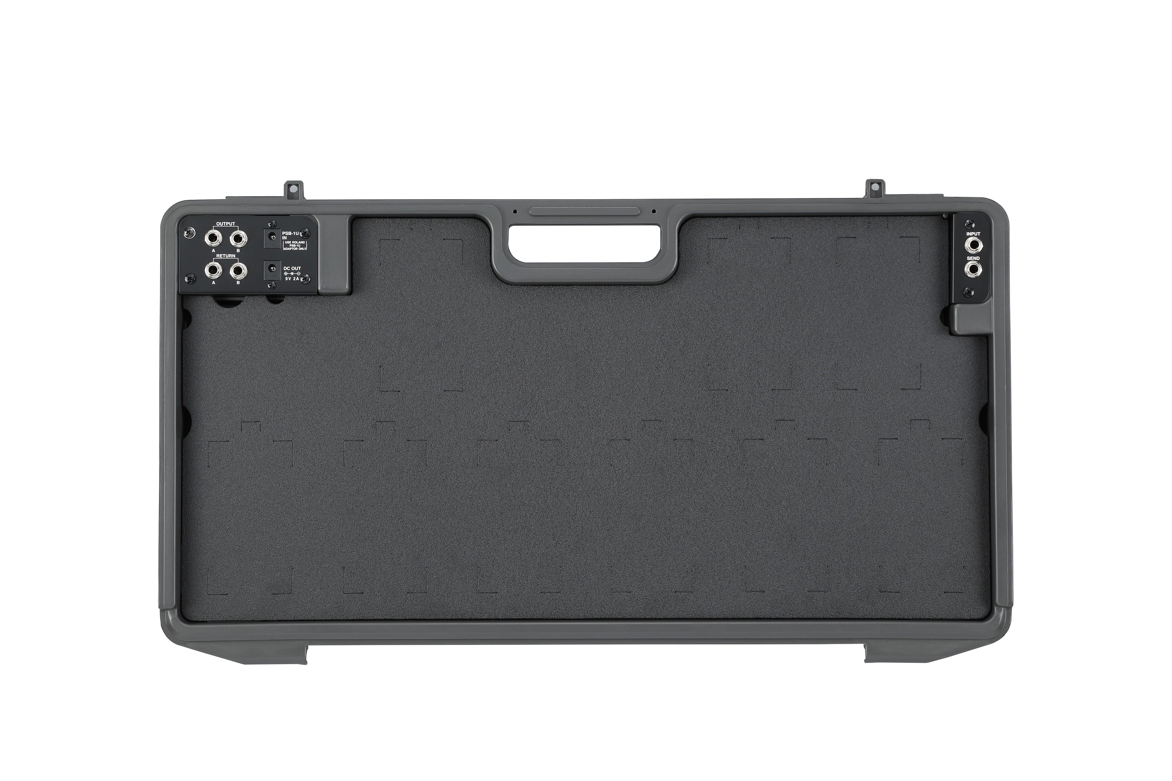 • Next-generation BCB-series pedalboard, updated for modern pedal setups • Accommodates a variety of pedal sizes, including BOSS compacts, the GT-1000CORE multi-effects, 200-/500-series pedals, loop switchers, and more • Customizable high-density foam insert holds pedals in place • Integrated cable guide channel under the insert for neat wiring • Light and rugged molded design with detachable lid • Built-in junction boxes for instrument input, mono/stereo outputs, and power • Includes daisy-chain cable and PSB-1U adaptor for powering up to 10 pedals