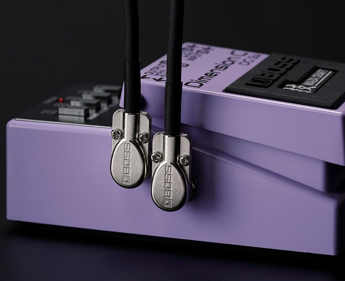 Combining high-quality audio performance with a unique space-saving design, BOSS BPC patch cables help maximize real estate in any pedal setup. Our custom-designed slimline pancake plugs fit on pedals and switchers with tight jack spacing, and feature 24K gold-plated contacts for corrosion-free operation. The oxygen-free copper center conductor keeps your tone intact, while heavy-duty braided copper shielding blocks noise and enhances durability.