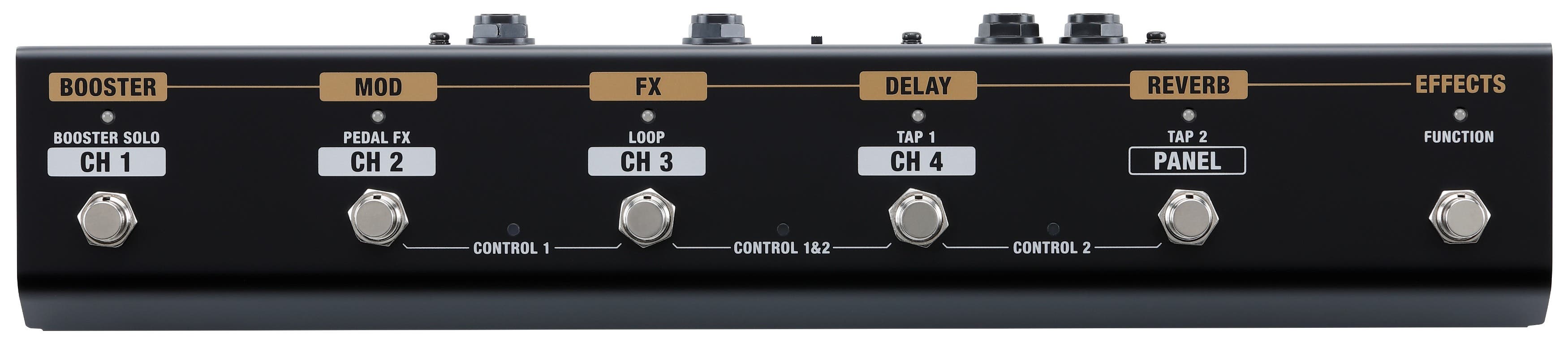 If you use two Katana MkII amps in your setup, FOOT CONTROL 2 mode is for you. Connect one GA-FC EX via two cables to select memories and effects on both amps, either together or independently.