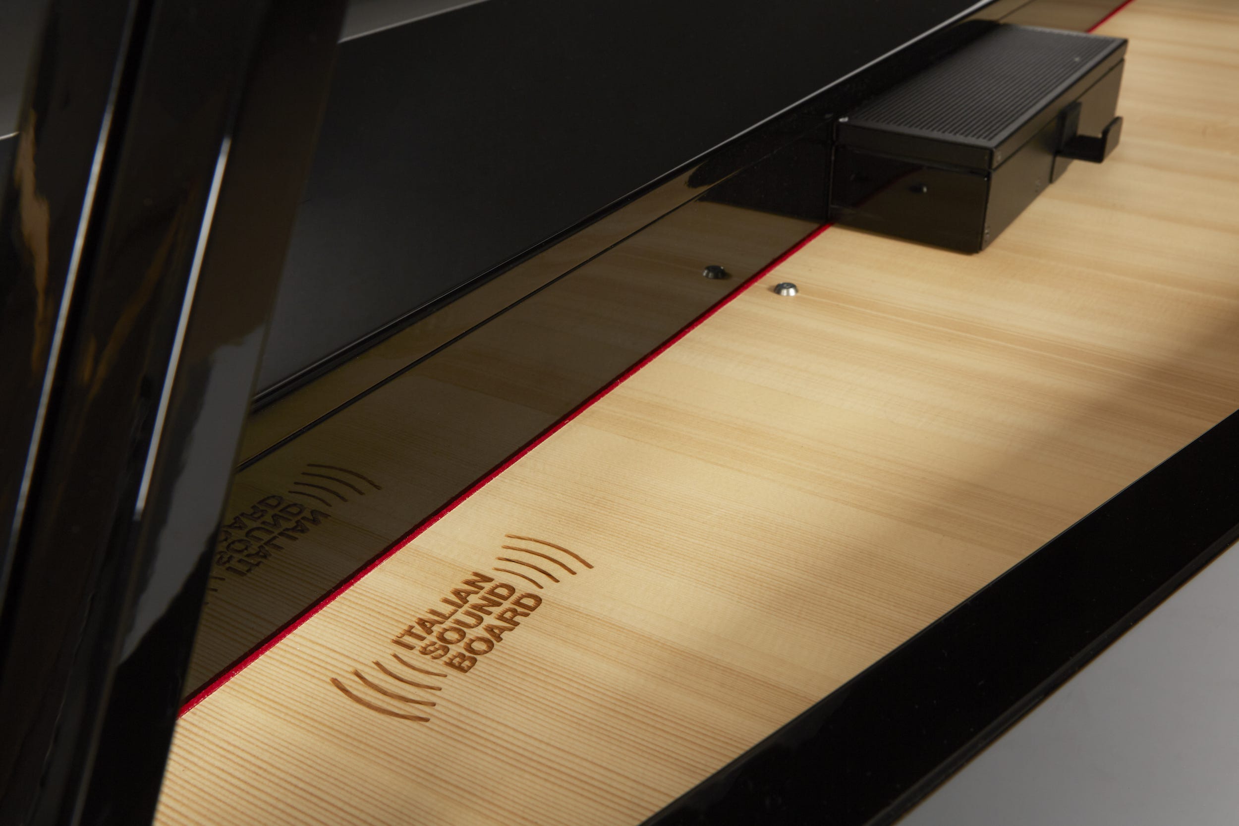 a spruce soundboard from Italy’s famed Val di Fiemme region (known for producing the wood of Stradivarius violins), and a contemporary design; the ultimate expression of Italian style.