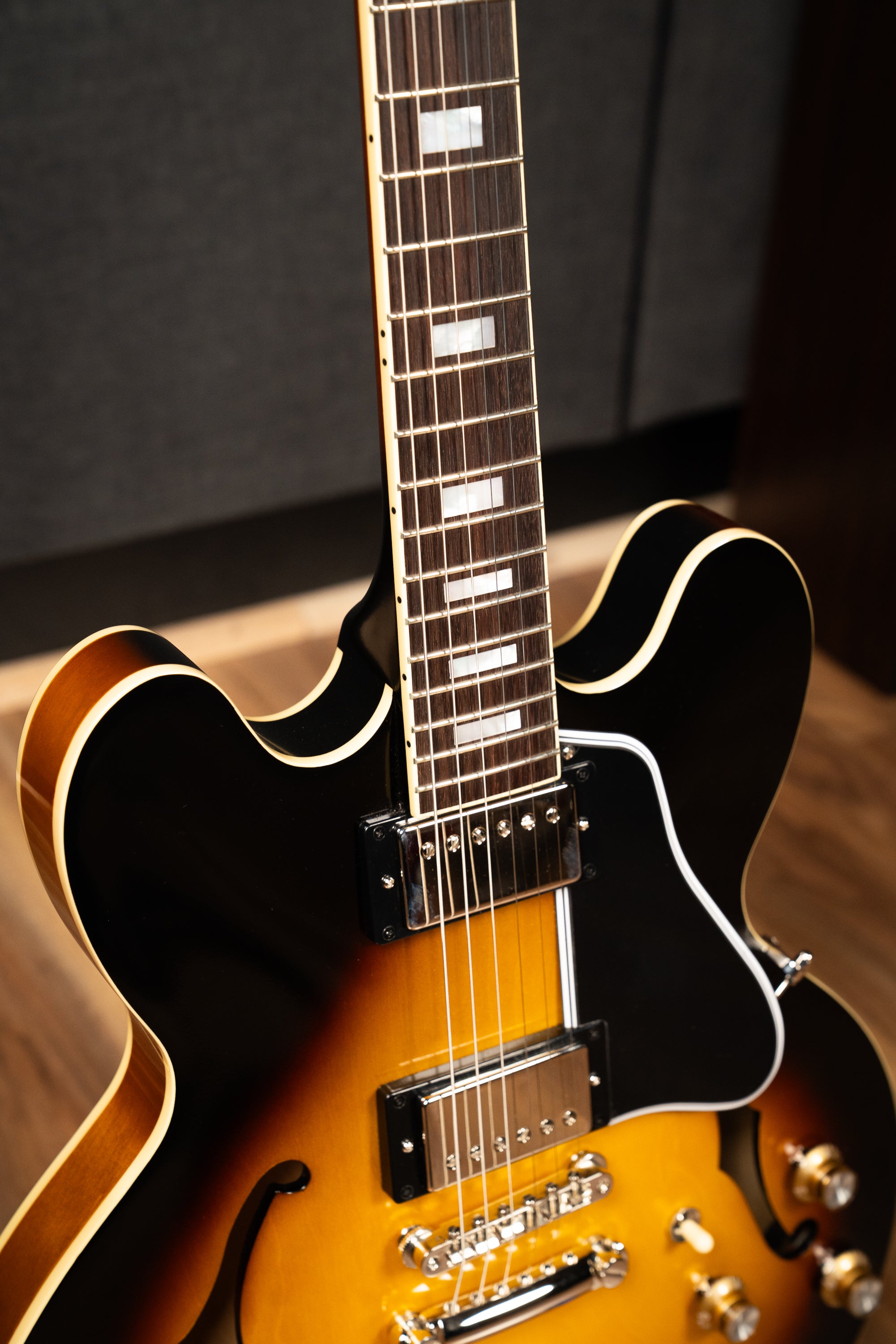 The Sixties Cherry and Vintage Burst finishes have a vintage gloss that gives them a cool vintage vibe. A vintage-style Black hardshell case with a plush Goldenrod interior and Inspired by Gibson Custom exterior graphics is also included to help keep this beautiful 1962 ES-335 Reissue safe during storage and travel.