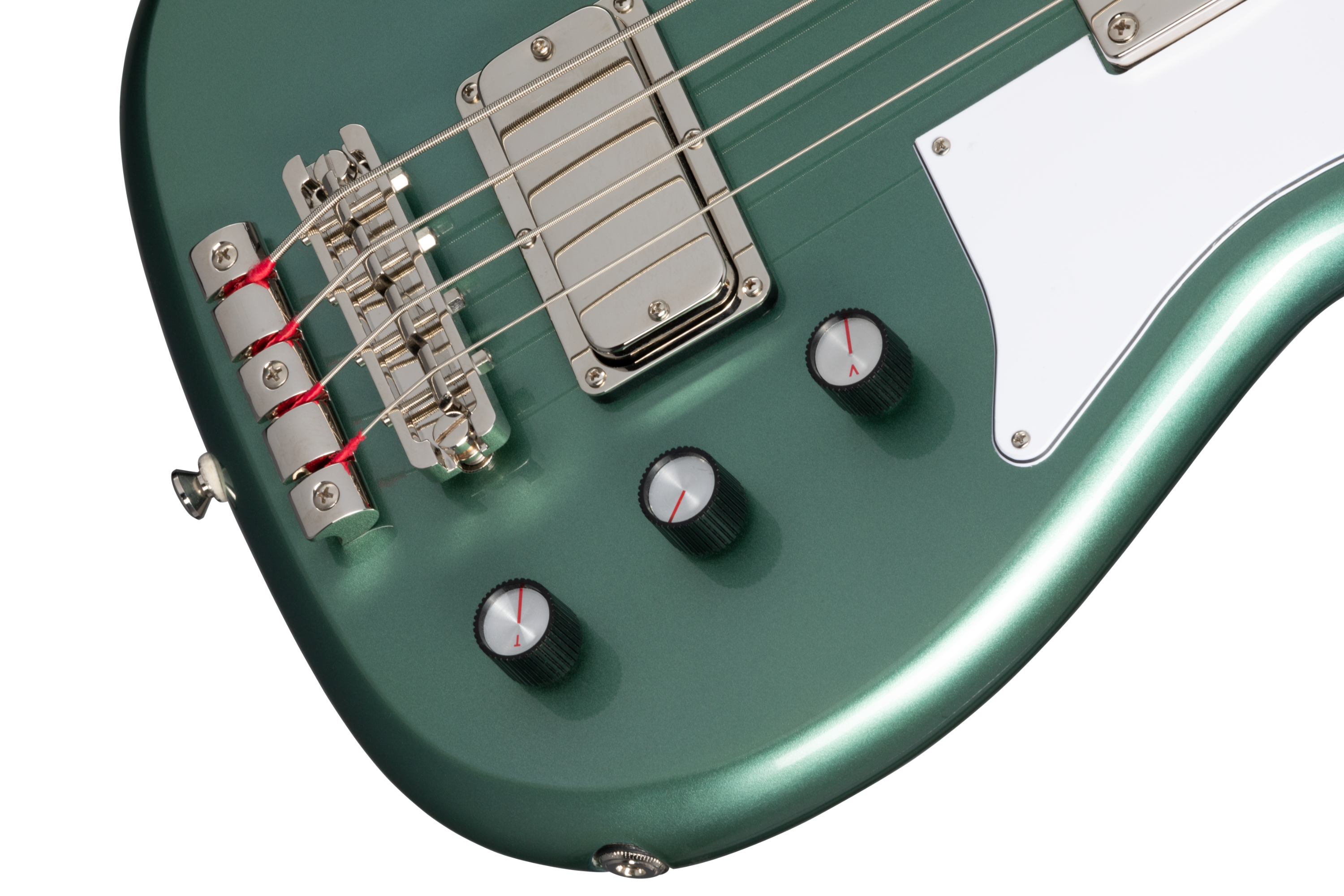 The Epiphone Newport Bass is an all-original design that debuted in 1961. The modern Newport Bass pays tribute to that rare vintage model while offering refinements to meet the needs of today’s bassists. The 30.5” scale length and comfortable Medium C profile make it suitable for players with a wide range of hand sizes, while the symmetrical double-cutaway body ensures excellent access to every fret. The Bass Sidewinder neck pickup provides rich, deep tones, while the TB PRO in the bridge position delivers brighter timbres. The two pickups are paired with master volume and tone controls and a blend knob so you can get precisely the tonal balance you desire. Available with a classic Cherry finish and three custom colors - California Coral, Sunset Yellow, and Pacific Blue.