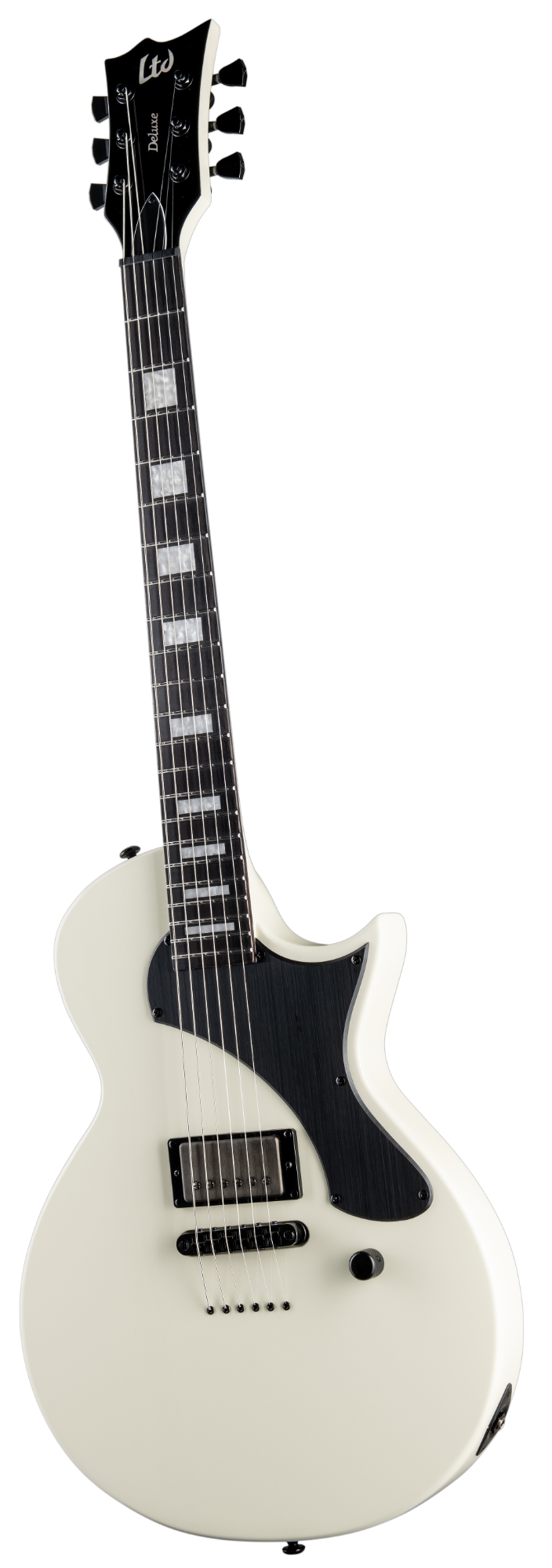 At first glance, the LTD Deluxe EC-01FT appears to be a simple, streamlined take on the single-cutaway ESP Eclipse design, but on closer examination, this guitar has some serious refinements that make it one of the very best choices for players seeking the most hardcore performances imaginable. With its flat-top body and clean electronics layout, there’s nothing to get in the way of everything from intense riffs and huge sizzling power chords to melodic lead lines. It features a comfortable 24.75” scale with a smooth set-thru heel construction, so there’s nothing to impede you as you grab the highest frets. It provides a classic mahogany body and three-piece mahogany neck to prioritize huge tones, and adds a distinctive brushed matte black pickguard to let you stand out from the crowd. The EC-01FT provides a 43mm nut, giving you a touch more fretboard in your hand for big power chords. It features a Macassar ebony fingerboard with pearloid block inlays and 22 extra-jumbo stainless steel frets. A recessed TonePros TOM bridge and string thru body keeps your string height low and comfortable while maximizing resonance. LTD locking tuners keep you in tune and make string changes a breeze. Perhaps the biggest advantage of the EC-01FT is the Custom 14, a new custom pickup designed exclusively for ESP by Seymour Duncan. Purpose-built to cover the specific needs of the ESP player, the EC-01FT’s flexible and dynamic Custom 14 pickup offers everything you need, ranging from clean, chimey intros to sizzling rock, classic metal, and hardcore tones… and the most crushing modern chugging and articulate, angular rhythm lines you ever hoped for. A push-pull control on the volume knob splits this pickup to the most wide-ranging single coil bridge territory we've ever offered.