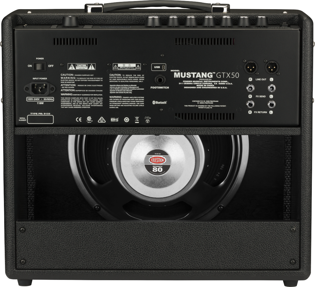 Mustang GTX50 offers incredible bang for the buck. The all-new cabinet design is more gig-ready and durable; a new 12-inch Celestion speaker produces strong, powerful response; and the improved amp, speaker and cabinet models ensure that Mustang GTX sounds better than anything else in its class. Stereo XLR line outputs and stereo effects loop let you interface with PA, recording and outboard gear. There's also an optional seven-button footswitch available with individual bank up and down functions and easy effects selection, making GTX a true live performance amp. It also unlocks the amp’s included 60-second looper. FEATURES • New models include: Fender classics like the Blues Jr and Vibro King, as well as other amplifers including JC Clean and Silver Jubilee • New effects include: Models of classic Overdrive, Fuzz, Delay and Pitch Shift effects • Newly-designed stage-ready cabinet and cosmetics • 12-inch Celestion® guitar speaker • 200 onboard user presets that can be modified for any style of music • All-new Fender TONE 3.0 for iOS and Android for deep editing, preset browsing from the Fender Tone community, preset back-up and restore, and more • Upgraded seven-button footswitch (optional) features individual bank up and down functions and easy effects selection, as well as a tap tempo and 60-second looper