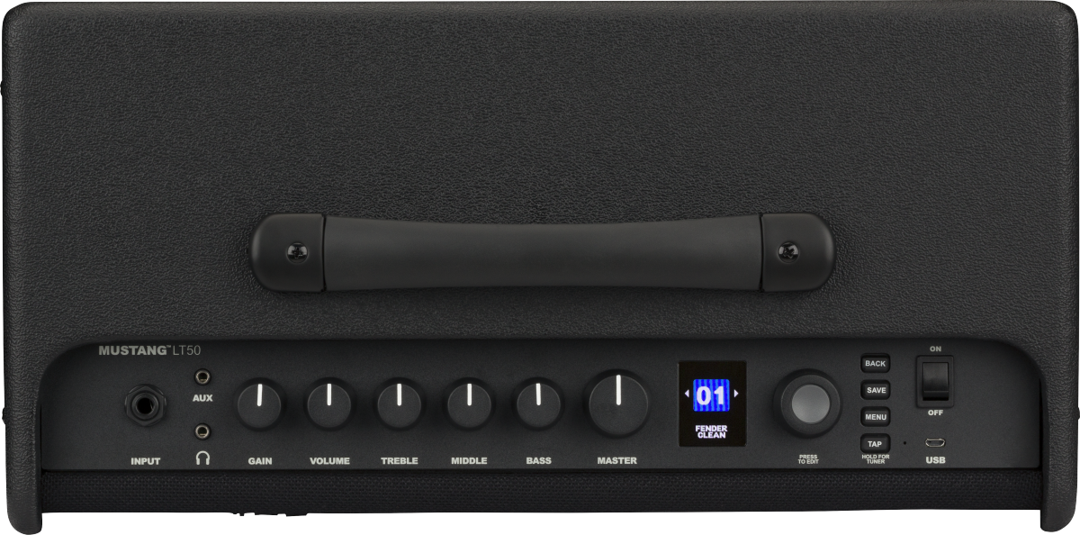 Mustang LT50 incorporates what we’ve learned over decades of producing the world’s best-sounding guitar amps. It’s ideal for practice or performance, with 50 watts of power, a high quality 12-inch speaker, a super-simple user interface, full-color display, and a collection of presets covering a wide range of music—a “greatest hits” of electric guitar tones. The versatile signal chain with high-quality onboard amp and effects models produces amazing tones, making it the most inspiring 50-watt amp in its class. And with a free Fender TONE 3.0 download, use your desktop Mac or PC to edit, store and manage your presets with ease. You’ll also have access to a wealth of exciting presets from the Fender TONE community. Mustang LT50 is a fun, flexible and easy-to-use modeling amp for any guitarist. It's the only 50-watt amp in its class with such a rich feature set.