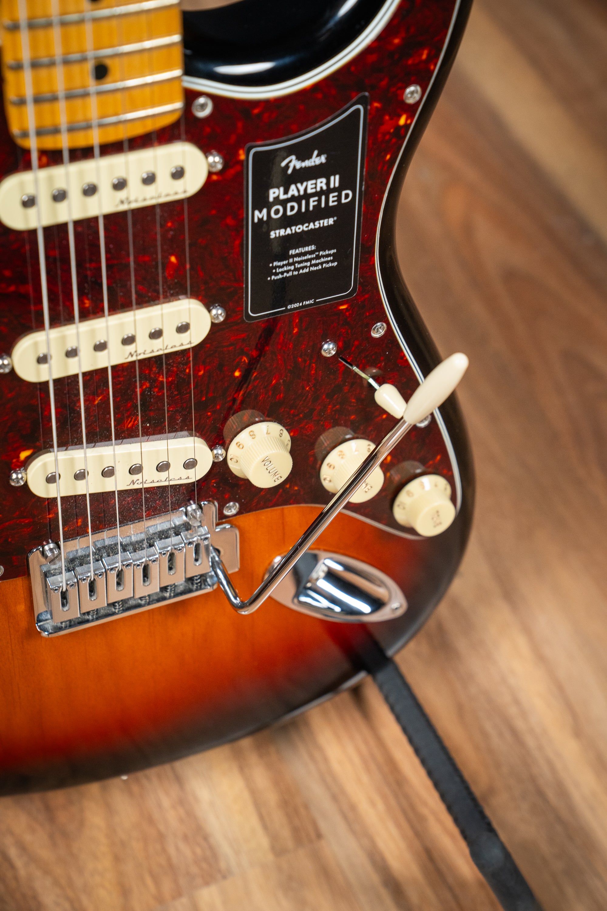 The Player II Modified Stratocaster® is a classic guitar with the modern player in mind. Everything about the neck is designed for fast and fluid playability, from the Modern “C”-profile with silky satin urethane finish on the back to the comfy 9.5”-radius slab rosewood or 1-piece maple fingerboard with smooth rolled edges and 22 medium jumbo frets. The alder body provides classic Fender punch and is available in a variety of exciting new finishes. The Player II noiseless™ pickups deliver classic Strat® chime and sparkle while eliminating unwanted noise and the push/pull switch on the 2nd tone control provides even more tonal flexibility by adding the neck pickup into switch positions 1 and 2. The 2-point tremolo, short post locking tuners, TUSQ® nut and modern string tree all combine to keep tuning incredibly stable, while the wider travel of the chamfered tremolo block allows players to coax even more expressive, musical vibrato from their instrument.