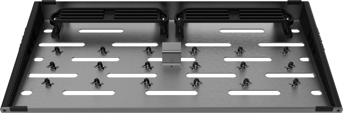 Surprisingly simple and remarkably versatile – the Fender® Professional Pedal Board delivers world-class performance and utility. The low-profile precision-machined anodized-aluminum chassis is lightweight and strong enough to stand up to the rigors of the road, while the thoughtfully designed cable routing and management system allows you to keep things neat and tidy, even if your board is overflowing with pedals. Under the hood, a universal mounting bracket fits most popular pedal power-supplies – and is a perfect match for the Fender Engine Room series. The included soft case with storage pocket and cable ties will keep your pedals and accessories safe on the way to the gig, studio or any other destination.