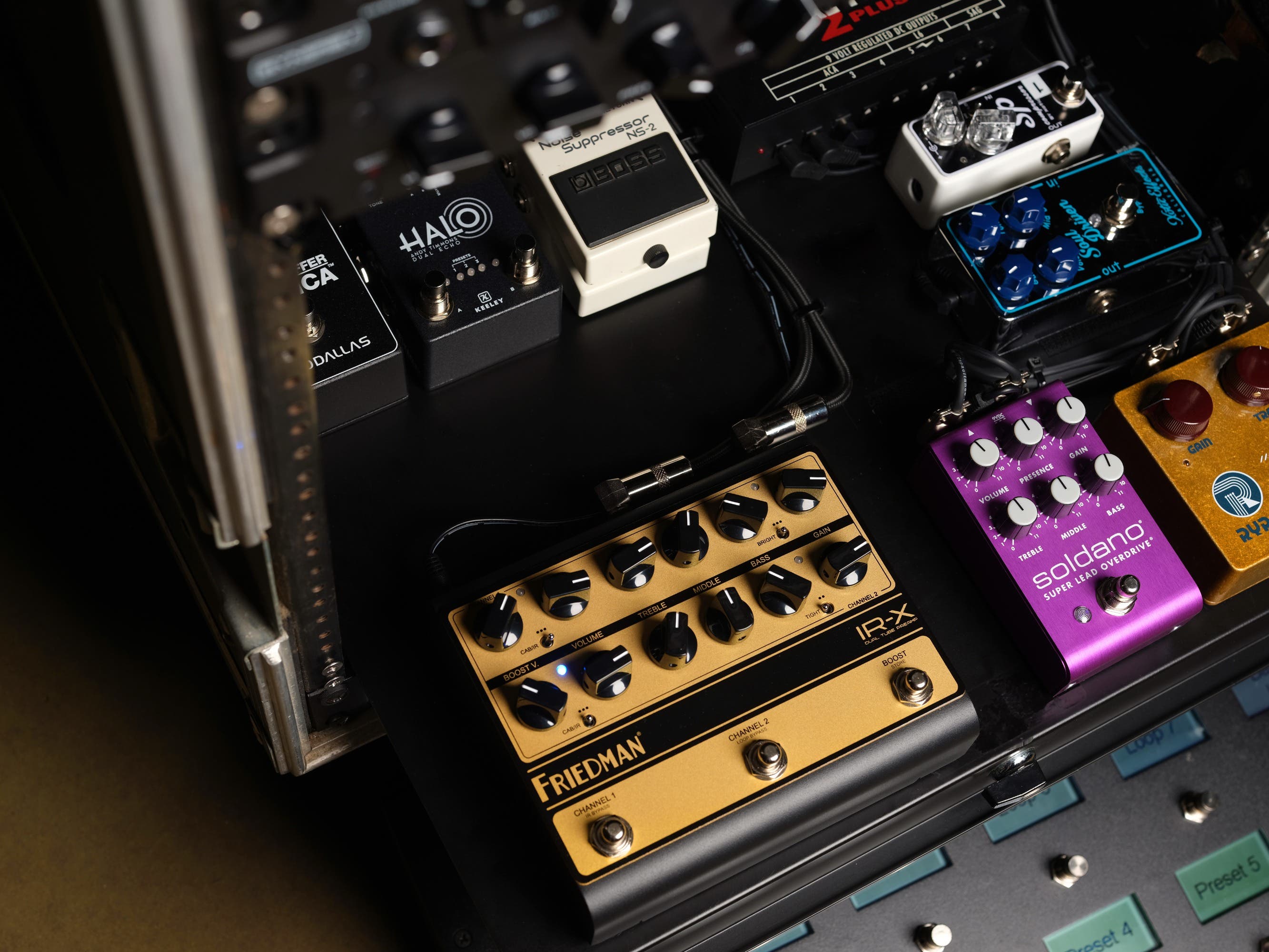 IR-X isn't simulating a Friedman tube preamp. It is one. While many available preamp pedals utilize tubes to 'warm up' their digital or solid-state circuit, two glowing hot 12AX7 preamp tubes, running at the proper high voltage, are this pedal's beating heart. A genuine preamp in every way, IR-X delivers all the tone, response, gain characteristics, and harmonic complexity you expect from a Friedman design.
