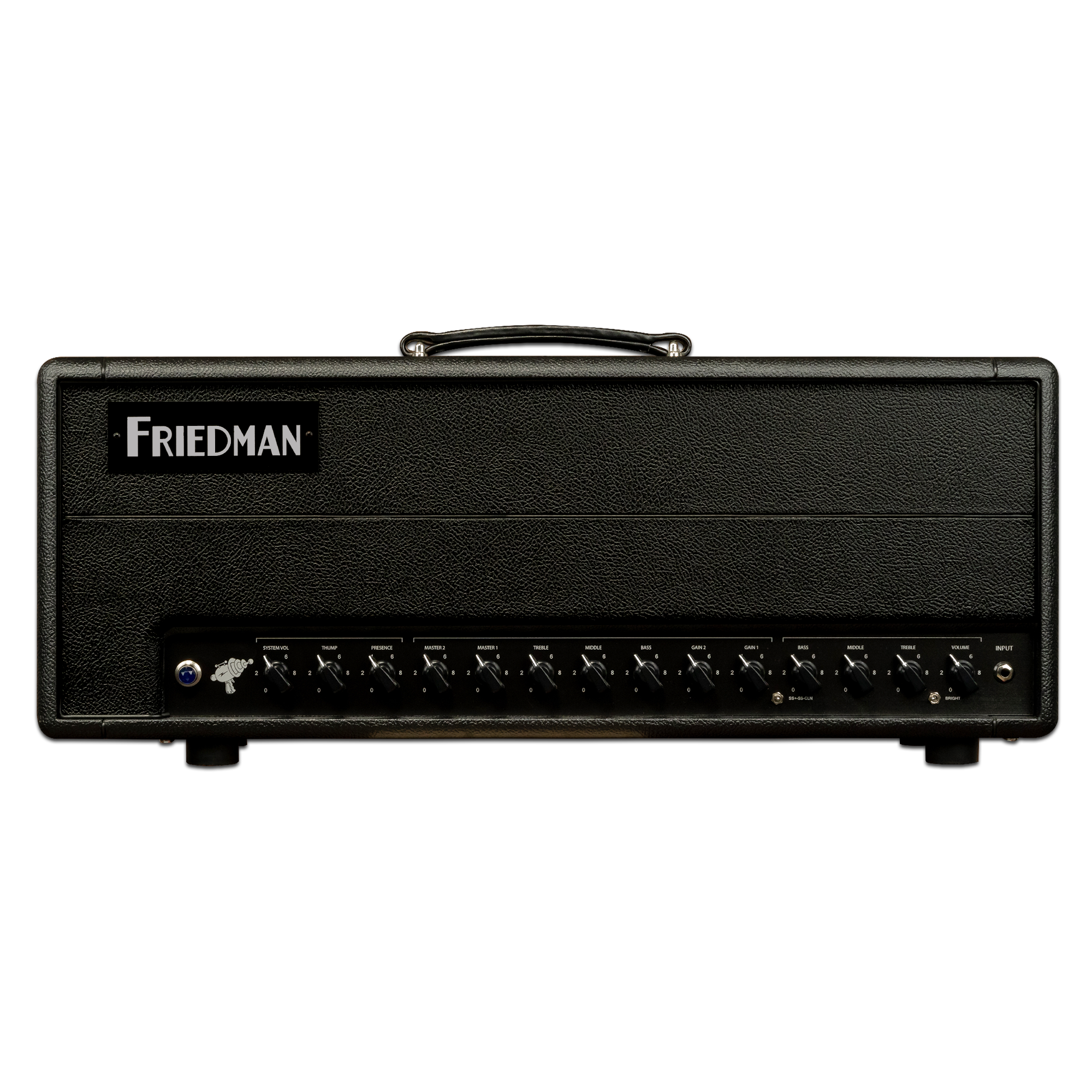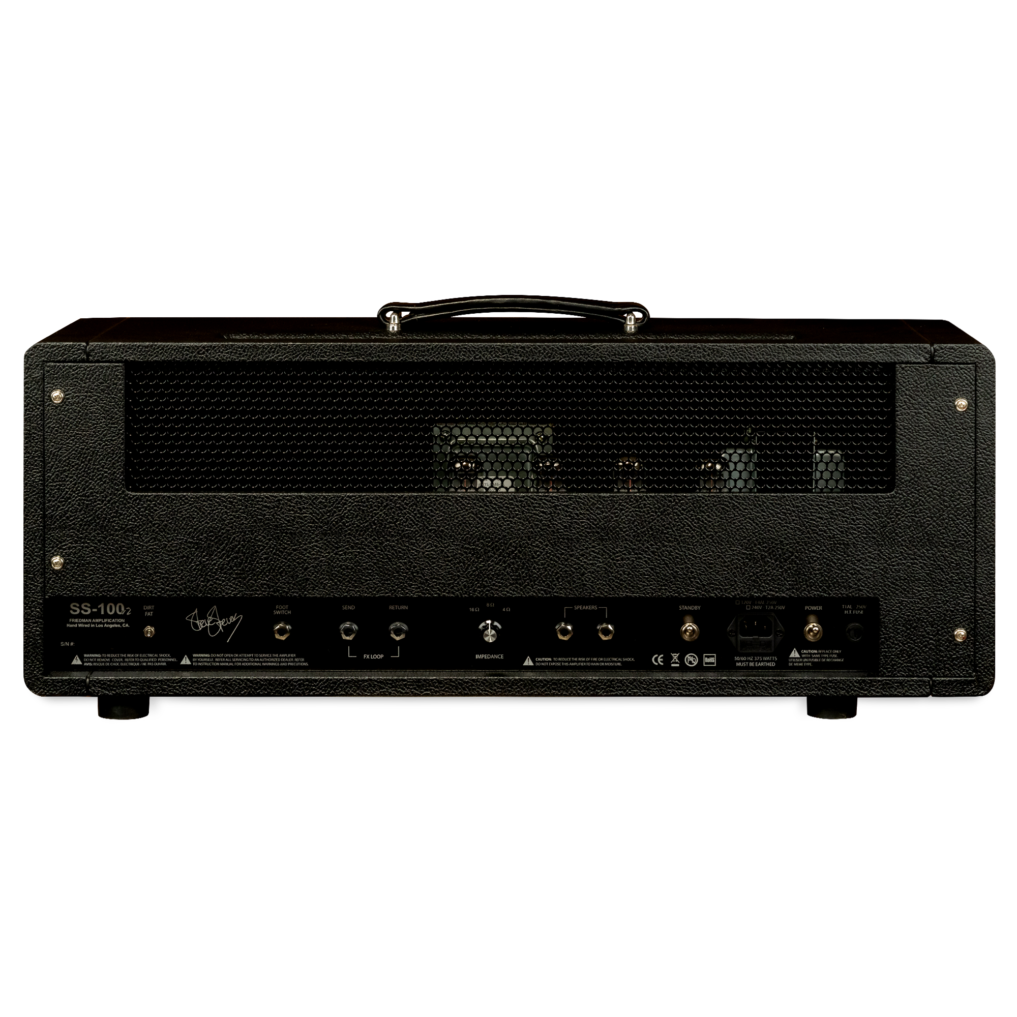 100-Watt all tube head Three channels Hand-wired in the USA 4 x EL-34 power tubes 5 x 12AX7 preamp tubes Master volume and gain controls per channel Shared EQ consisting of bass, middle, treble and fat switch (SS, SS+ channel) Clean channel featuring volume, treble, middle, bass and 3-way bright switch Global Thump, Presence and System Volume Ultra transparent series FX loop 16, 8, and 4 ohm Impedance selector switch Custom USA made transformers 2 button footswitch with LED’s included
