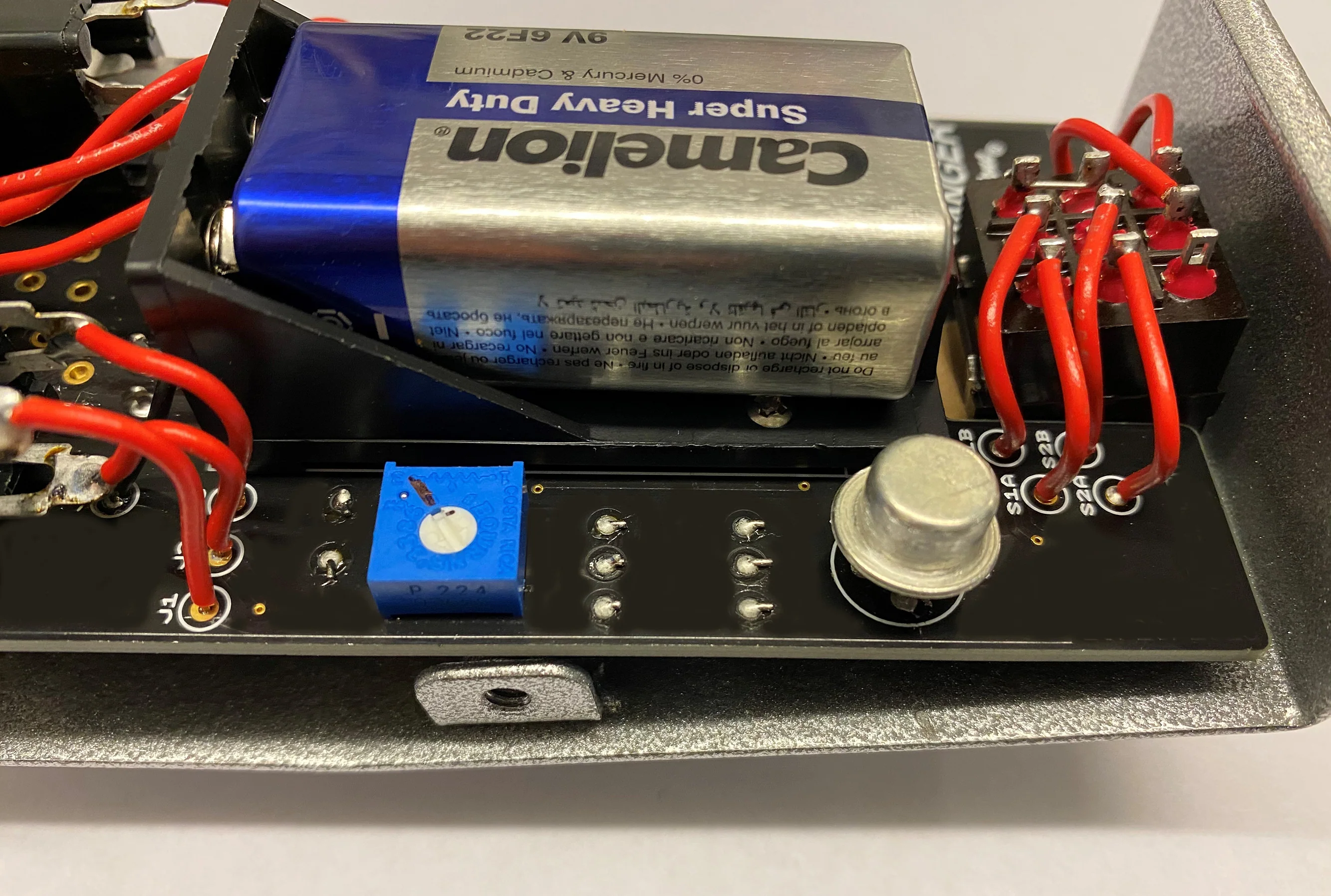 Adjustable Transistor Bias trimmer. Want it soft? Want is hard? Want more or less chime? Just turn it and adjust by ear, there is no wrong setting.