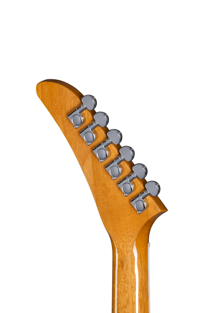 It has travelled to stages around the world, but the 70s icon is back to explore a new generation of players. Featuring a pair of 70s Tribute humbuckers™, hand-wired with Orange Drop® capacitors, this Explorer™ begs to be played loud. With its futuristic body shape, bound rosewood fingerboard, black Speed knobs, and chrome hardware, it looks as iconic as the generation of music it helped create.