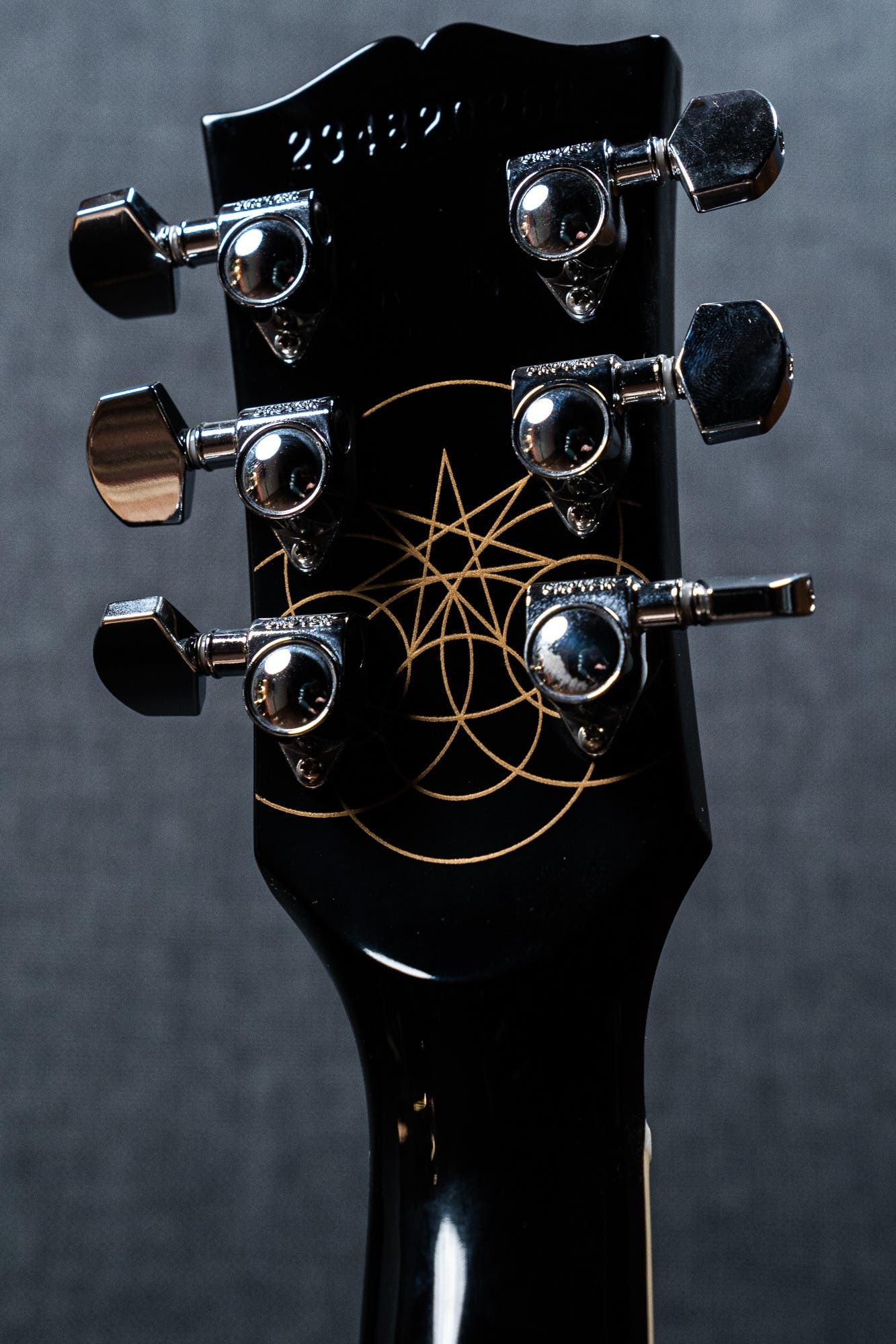 Body Body Shape Les Paul Body Material Mahogany Top Maple Binding Cream Weight Relief None Finish Gloss Nitrocellulose Lacquer Neck Material Mahogany Profile 70s Rounded with Volute Scale Length 24.75" / 628.65mm Fingerboard Material Ebony Fingerboard Radius 12" Number Of Frets 22 Frets Medium Jumbo Nut Material Graph Tech Nut Width 1.7" / 43.053mm Inlays Mother of Pearl Trapezoids Joint Glued In, Set Neck Headstock Custom Adam Jones Artwork on Back of Headstock Hardware Finish Chrome Tuner Plating Chrome Bridge Aluminum Nashville Tune-O-Matic Tailpiece Stop Bar Tuning Machines Grover Rotomatic with Contemporary Style Buttons Pickguard None TrussRod Adjustable Truss Rod Cover Black with Adam Jones Signature Control Knobs Black Speed Switch Tip Chrome Switchwasher Black Plastic Parts Black Control Covers Black Strap Buttons 2 - Bottom and Shoulder Mounting Rings Black Pickup Covers Neck: Chrome, Bridge: None Electronics Neck Pickup BurstBucker 1 Bridge Pickup DC High-Gain Humbucker Controls 2 Volume, 2 Tone, Hand-wired with Orange Drop Capacitors Pickup Selector 3-way Toggle Output Jack 1/4" Miscellaneous Strings Gauge .010, .013, .017, .026, .036, .046 Case Modern Hardshell Case