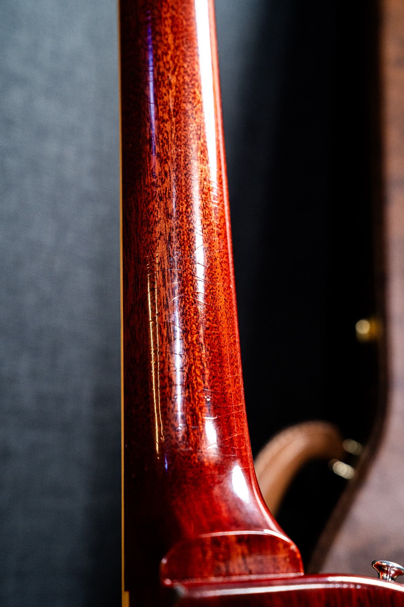 Neck Material - Solid Mahogany Neck Profile - Authentic '59 Medium C-Shape Scale Length - 24.75 Fingerboard Material - Indian Rosewood, Hide Glue Fit Fingerboard Radius - 12 Number Of Frets - 22 Frets - Authentic Medium-Jumbo Nut Material - Nylon Nut Width - 1.687 End of Board Width - 2.24 Inlays - Cellulose Nitrate Trapezoid Joint - Long Tenon, Hide Glue Fit