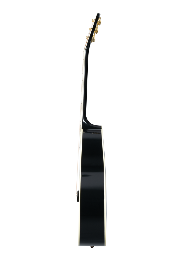 The SJ-200™ is renowned worldwide as the “King of the Flat-tops.” First introduced in 1937, musical legends have embraced this superlative instrument across genres for generations. The Super Jumbo flamed maple body, paired with a Sitka spruce top, delivers outstanding tone and unparalleled projection. This version of the SJ-200 gets the Custom treatment with Les Paul™ Custom-inspired cosmetics, including an Ebony nitrocellulose lacquer finish, multi-ply binding on the top and back, a bound Les Paul-style peghead with a Custom split diamond inlay in mother of pearl, a bound ebony fretboard with mother of pearl Custom Block inlays, and gold Grover® Rotomatic® tuners. It comes equipped with a hard shell case and L.R. Baggs™ Session VTC electronics for plug-and-play use on stage or in the studio.