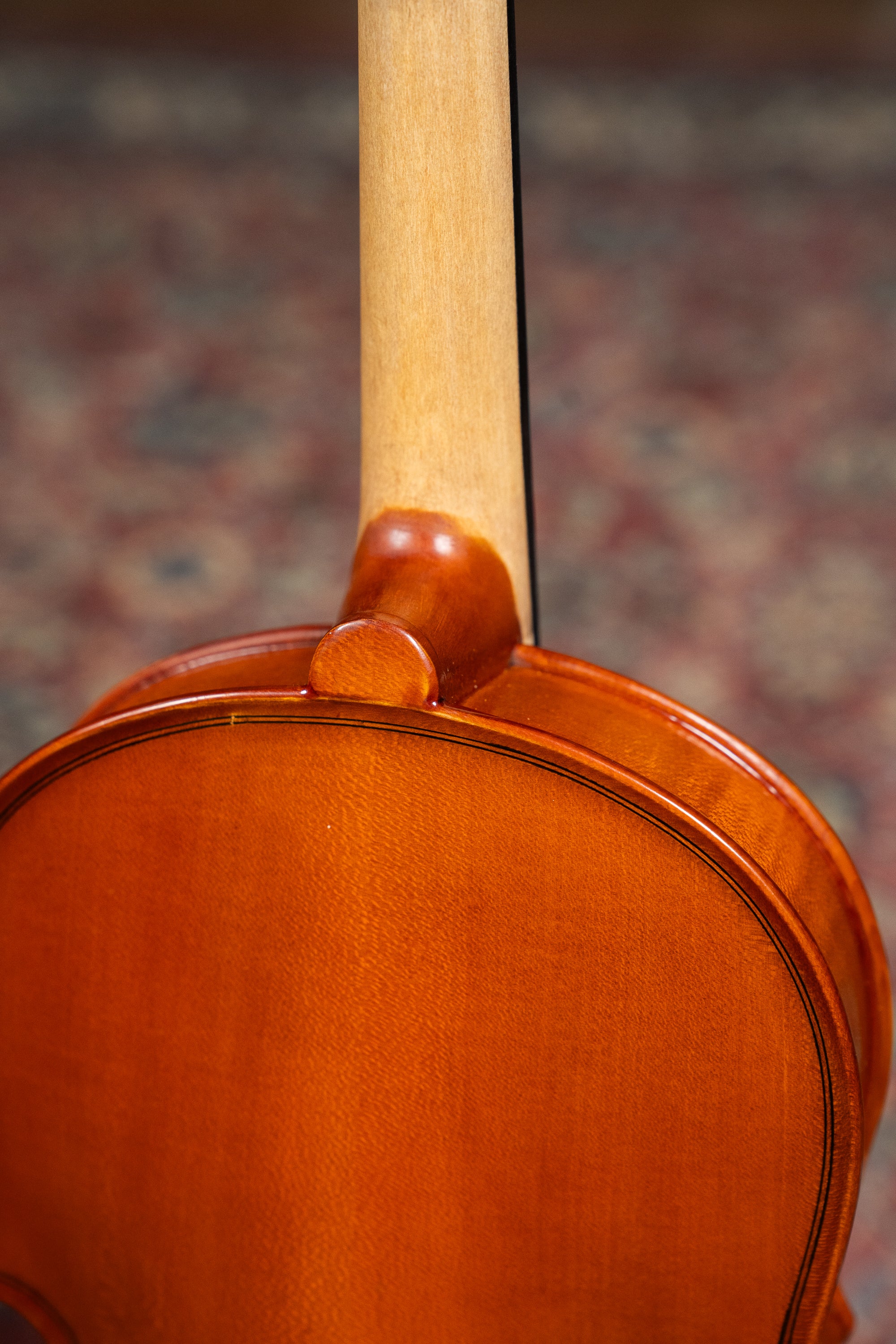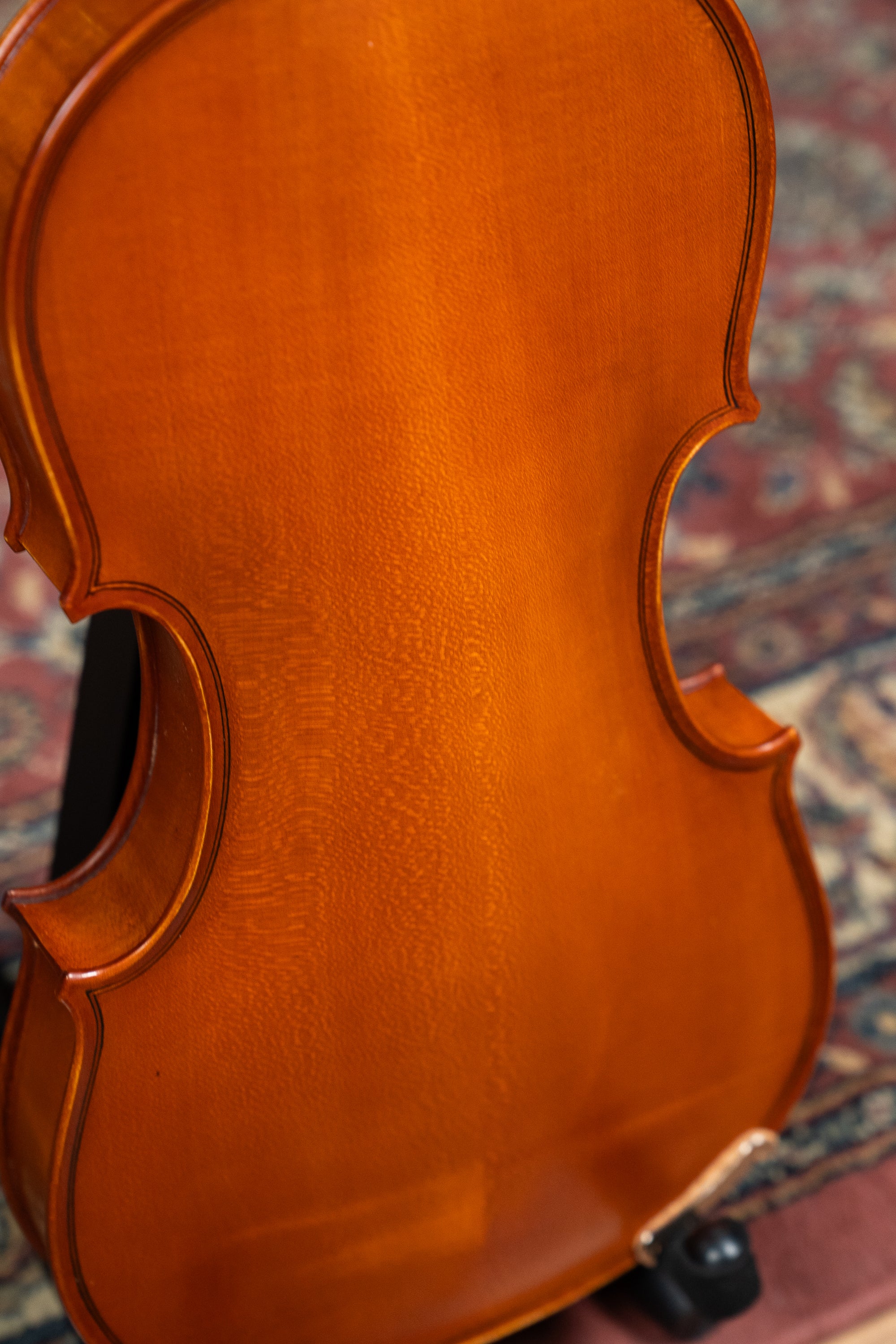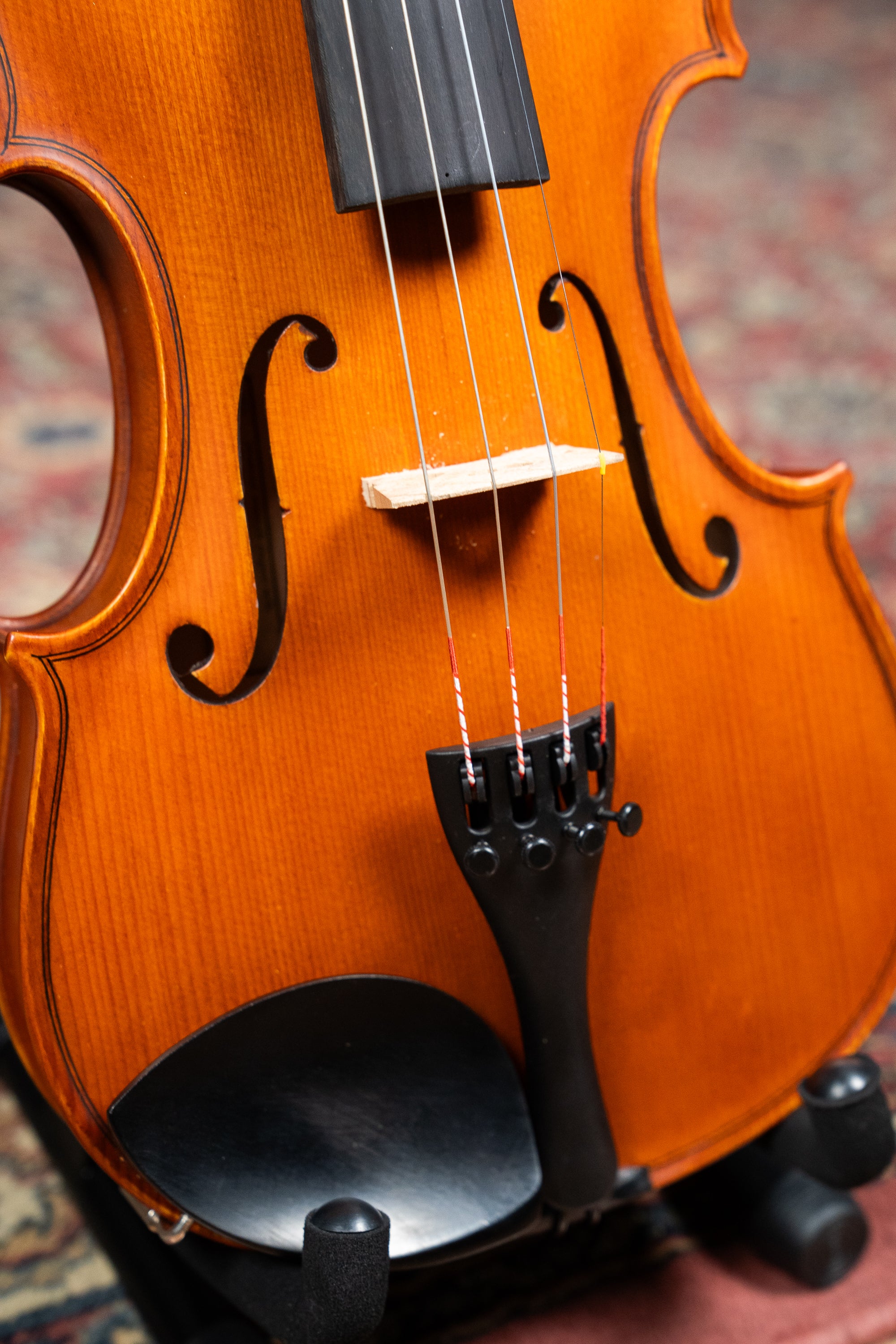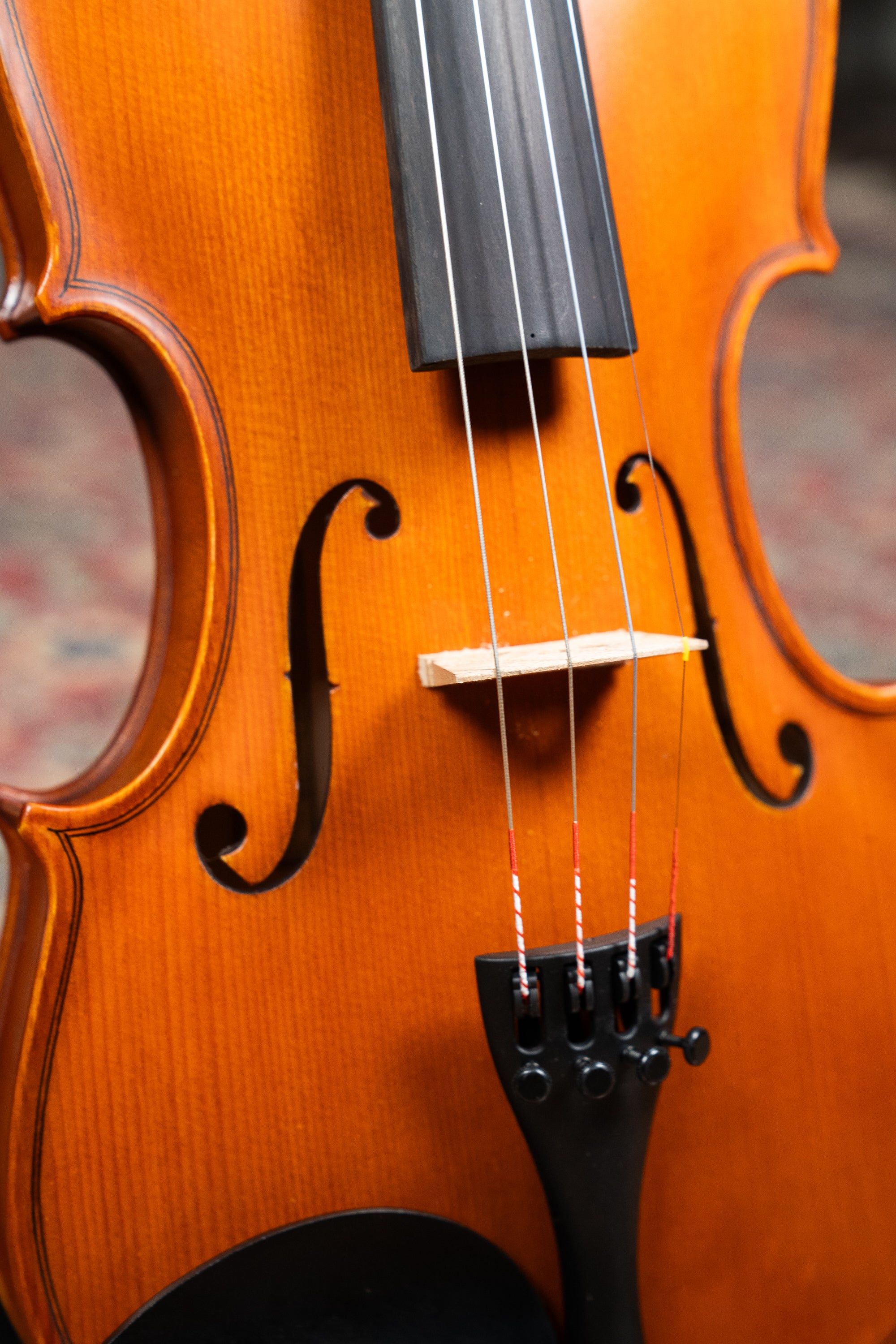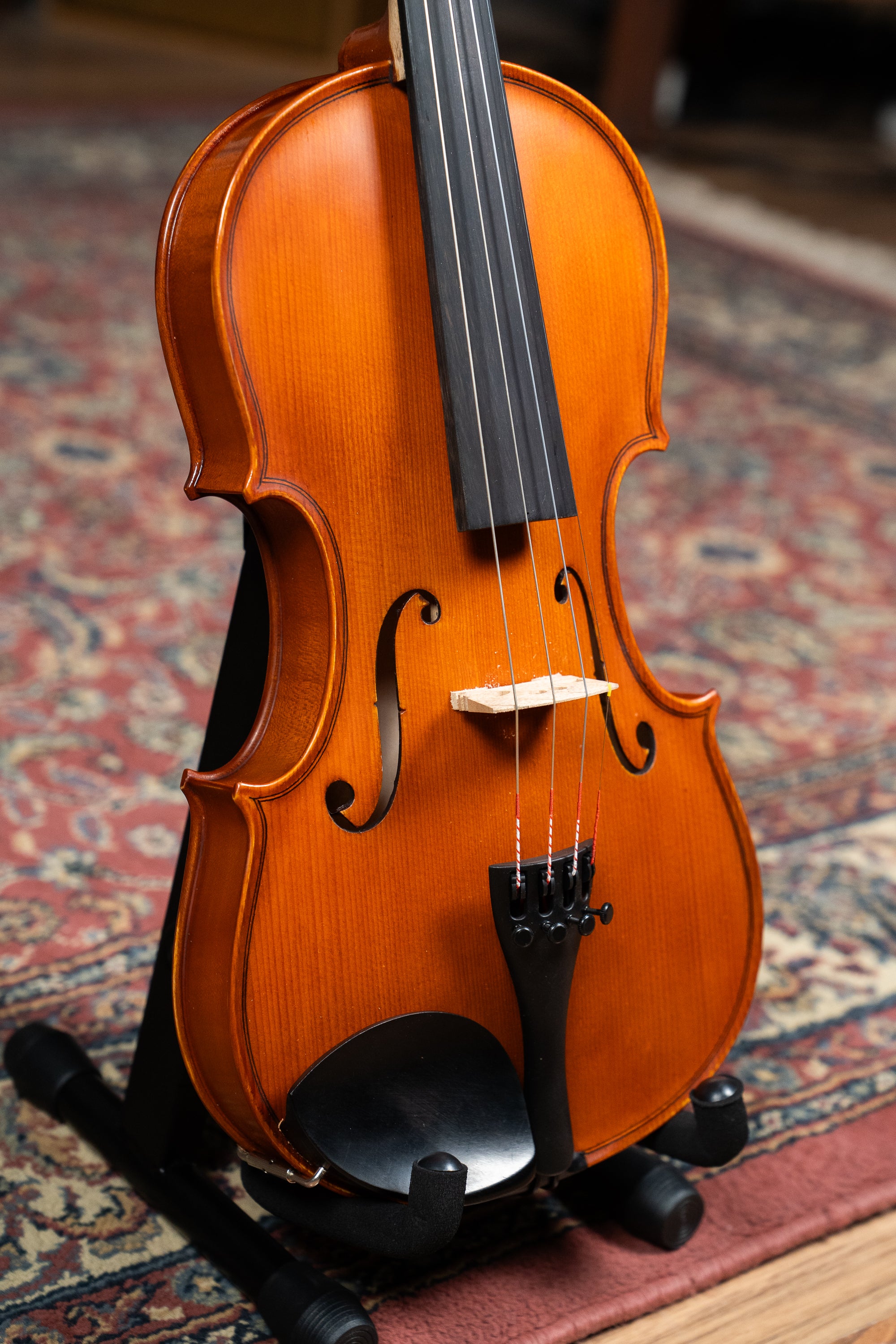 Upon landing in Australia each violin is inspected before being made into outfits in our warehouse. German Pirastro Tonica are added to the outfit along with the Wittner Ultralight tailpiece and French Aubert bridge supplied with the instrument. The strong, hard-wearing FPS woodshell case and FPS brazilwood horsehair bow completes the package.
