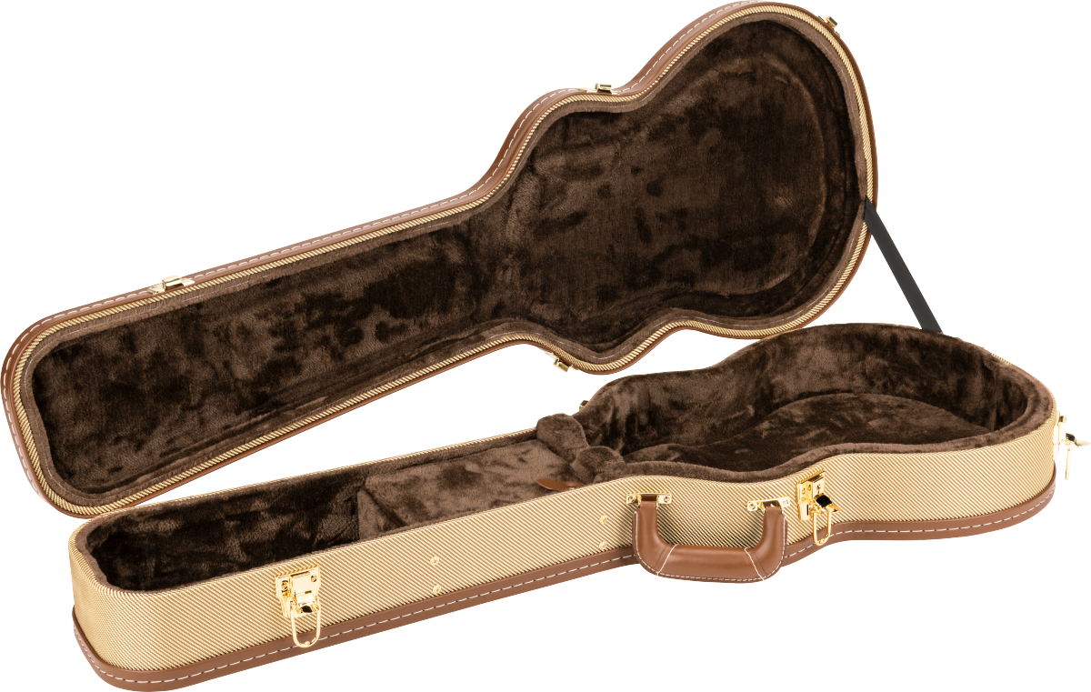 Features Designed specifically for the Gretsch G2655T Streamliner Flat-top durable plywood construction Tweed wrapped exterior with brown accents Brown plush interior with storage pocket Four gold plated latches with one locking latch PVC padded handle