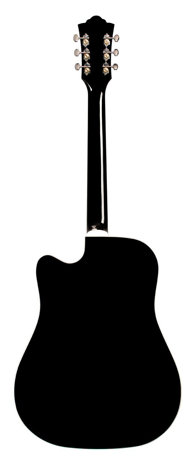The D-140 models from Guild are performance-driven dreadnoughts with all the playability, tone, and vibe that have made Guild a go-to name for discerning players for over 70 years. The D-140CE Black adds a new color option to the ever-popular D-40 and D-140 lineup, pairing an eye catching black high gloss finish that contrasts beautifully with white binding and Mother-of-Pearl inlays in the rosette and headstock. Premium specs like all solid tonewoods, bone nut/saddle, a Fishman GT-1 pickup system, and Guild’s Premium quilted gig bag with microfleece interior make the D-140CE a professional level instrument packed with incredible value.
