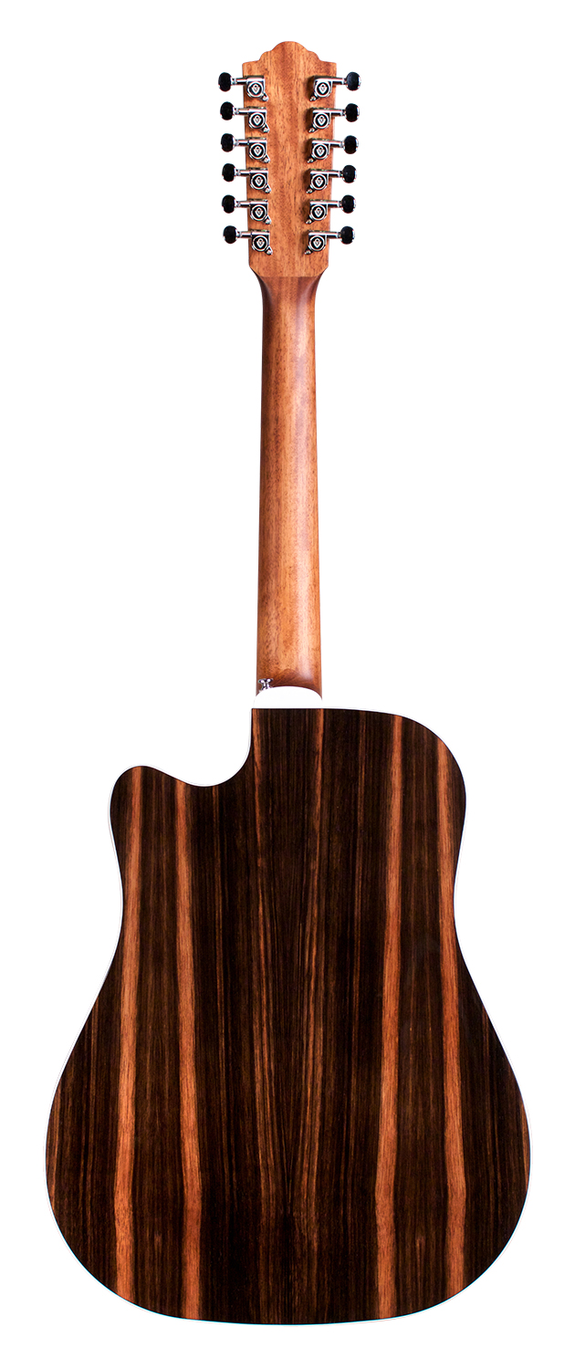 Add a little something extra to your 12-string with the D-2612CE Deluxe! This dreadnought guitar is a powerhouse of a 12-string, featuring a solid spruce top with a stunning arched striped ebony back and striped ebony sides. This unique tonewood gives the D-2612CE Deluxe a clear, powerful voice with a pronounced bass response while a gloss finish highlights its unique striping pattern. The D-2612CE Deluxe's twelve strings, combined with its arched back, give this guitar unparalleled projection and sustain—a welcome addition to Guild's legacy of quality 12-string instruments. Premium appointments include a mother-of-pearl rosette, Guild Peak headstock logo, pau ferro fingerboard and bridge, and Fishman GT-1 Pickup System with volume and tone controls.