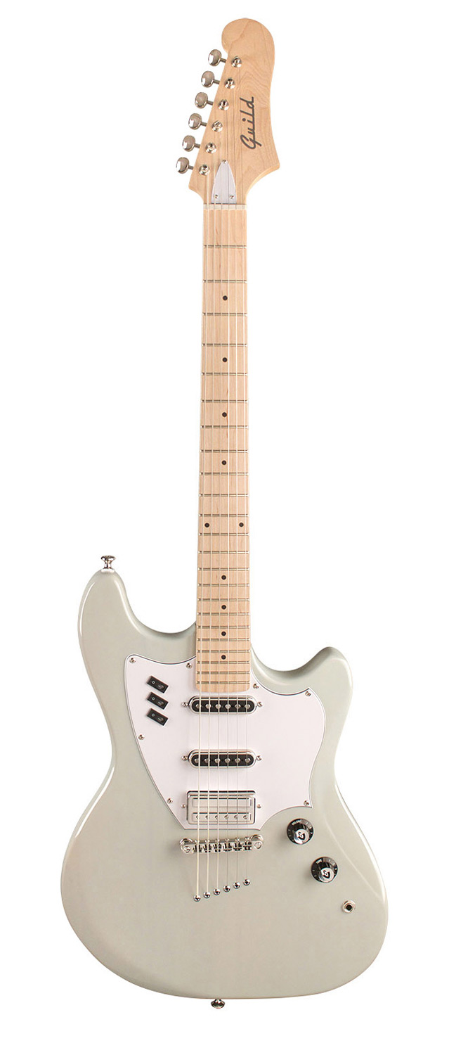 Solid Poplar body with offset appeal Versatile HSS pickup configuration featuring DeArmond® Aerosonic middle and neck pickups and Guild® LB-1 bridge pickup Rocker pickup switching system offers easy access to seven pickup combinations Satin finished C-shaped Maple bolt-on neck 25.5” scale length Available in Catalina Blue, Sunset Orange, and White Sage transparent finishes.