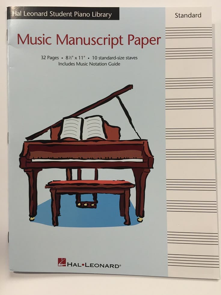 Sure to be a hit with piano students and teachers, our new HLSPL manuscript paper is 8-1/2 x 11, with ten standard-size staves and a music notation guide. There are 32 pages per booklet.