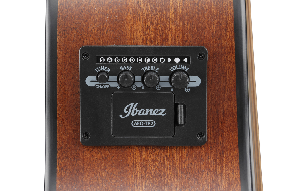 - Ibanez AEQ-TP2 preamp w/Onboard tuner The Ibanez AEQ-TP2 preamp provides the extra punch of on-board EQ along with a convenient and easy-to-read digital tuner and 2-band EQ, located on the instrument’s upper bout.