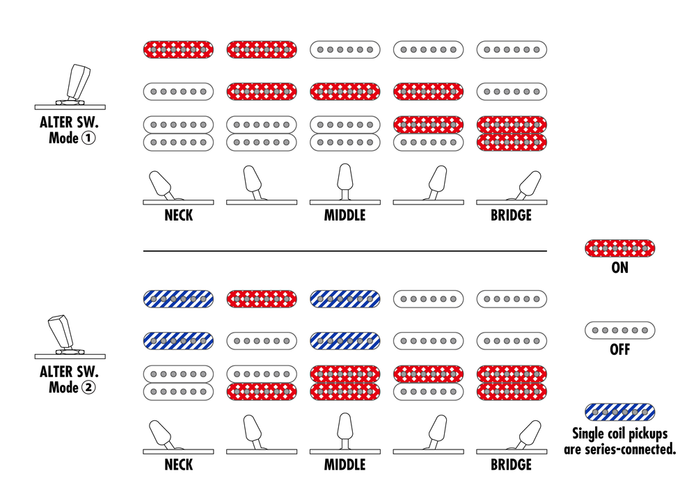 - dyna-MIX9 switching system with Alter Switch The dyna-MIX 9 offers nine sound variations and can switch between humbucker and single coil modes with just a flick of the mini switch. One mode even simulates a humbucking sound from the combination of two single coil pickups.