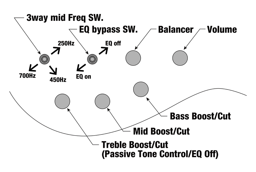 - EQ bypass switch (passive tone control on treble pot) The EQ bypass control offers precision tonal adjustments, including a switch to choose passive-only operation. When the EQ bypass is activated, the treble tone control knob becomes the global tone control for the passive circuit.