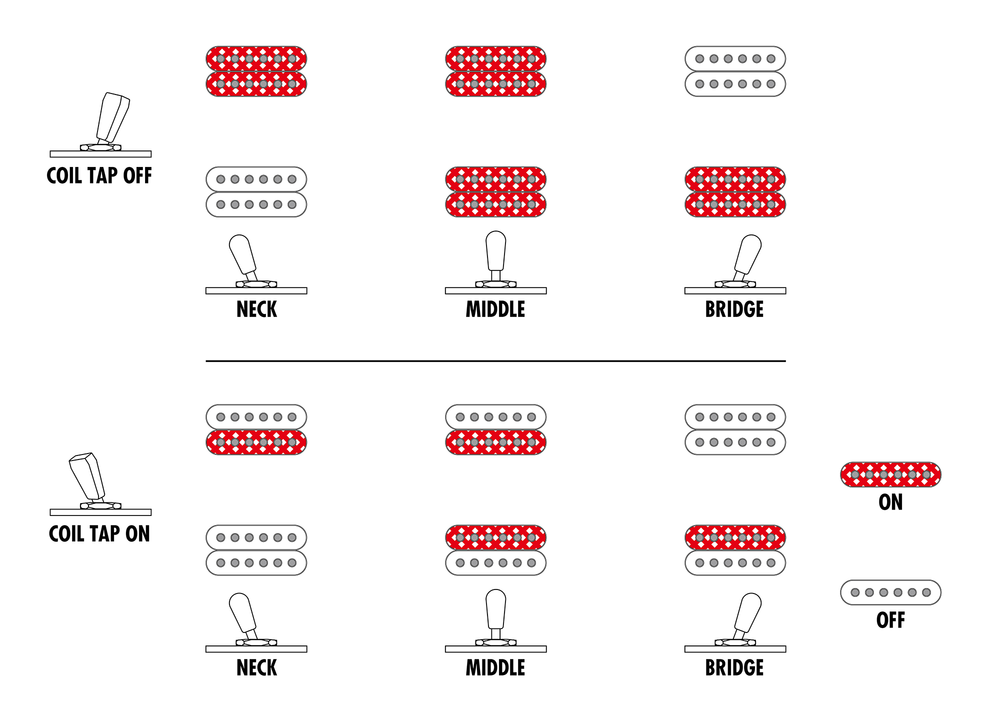 - Coil-tap switch The coil tap switch adds sound and tonal variations for both pickups.