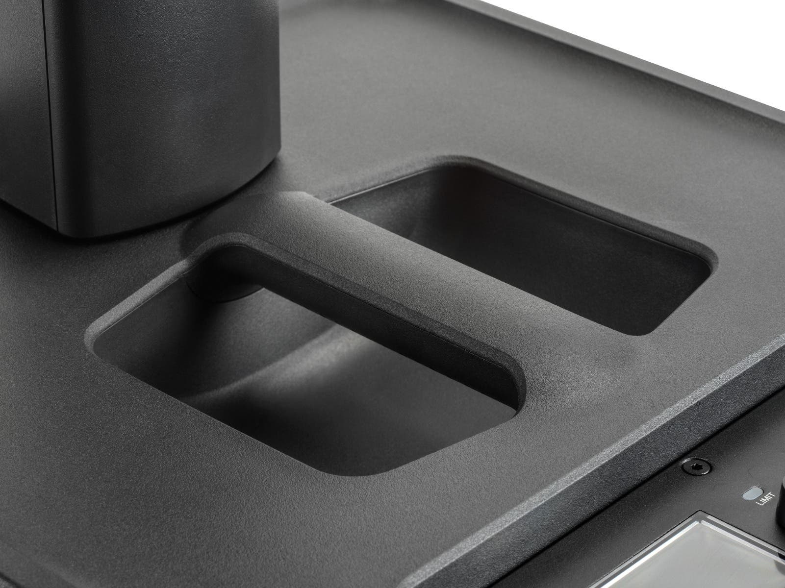 A vertical array of 12x 2.5-inch drivers delivers consistent, even HF response from the front of the room to the back