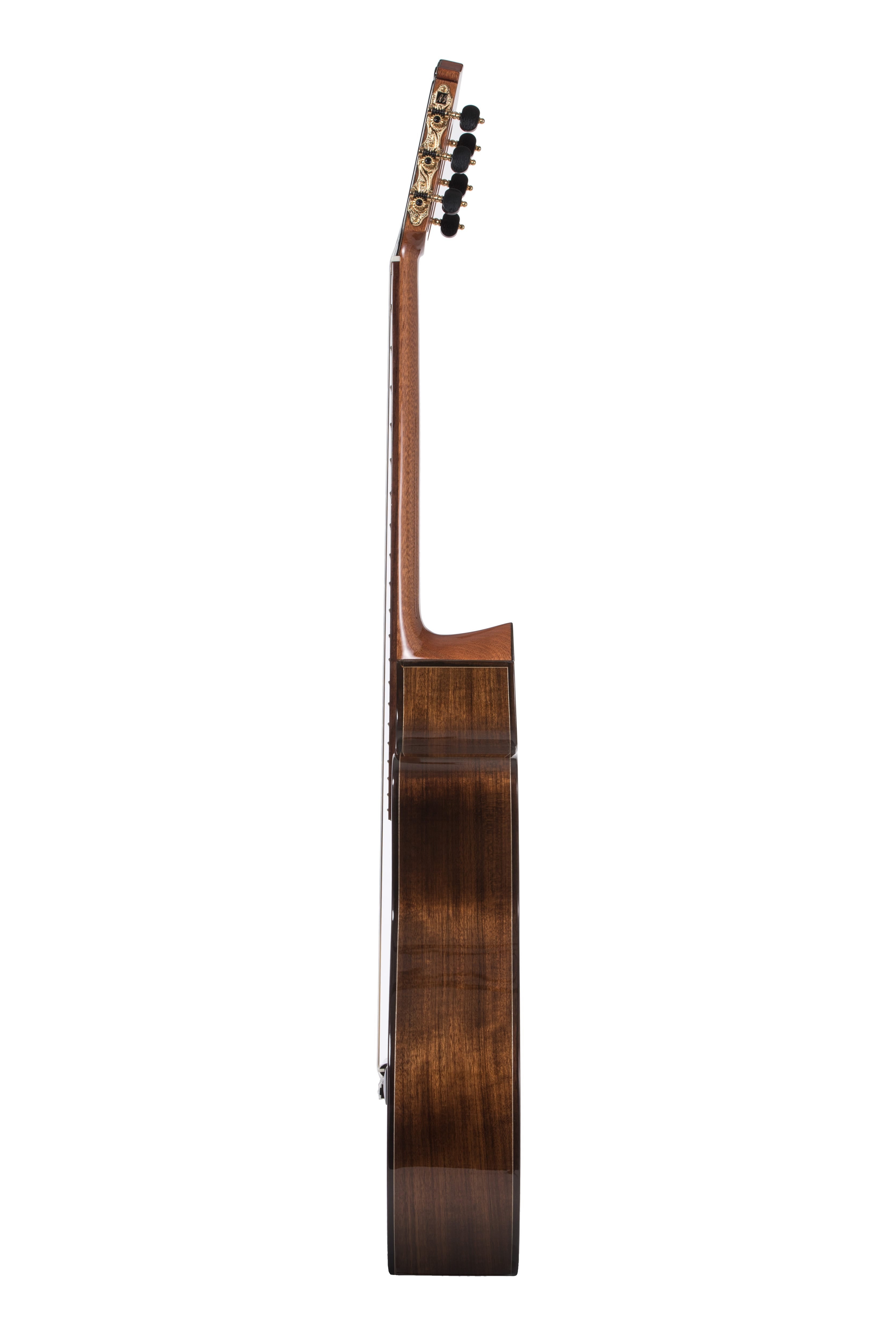Solid European spruce soundboard coupled with solid mahogahy back and sides. The tone and dynamic range of this guitar will grow with your playing to enrich the sound of this beautiful instrument. Rich mids and warm tones are characteric of the MCG-115. Cutaway and Fishman electronics make it a perfect performance instrument. Comes with a beautiful hardshell case.