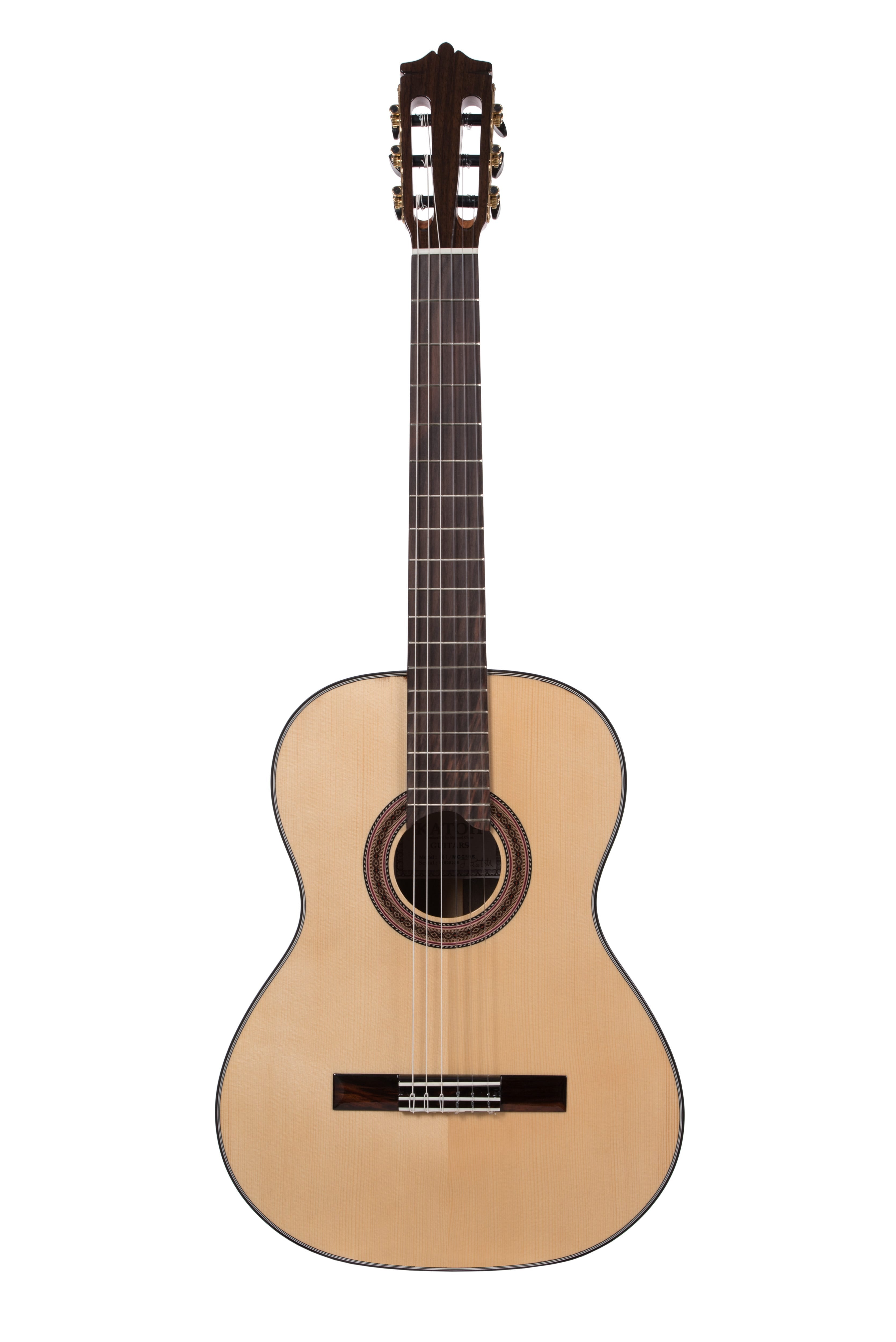 The MCG-40 has been described as the perfect beginner’s guitar. It has a solid cedar soundboard with laminated mahogany back and sides. A wonderfully comfortable and playable mahogany neck is complemented by a rosewood fingerboard. The solid spruce soundboard is bright and will evolve over time as the spruce stiffens. The laminated mahogany back and sides set the guitar of beautifully. The fast response and bell-like tones with sweet trebles make this a popular model especially among traditionalists. The MCG-40 is popular among Katoh guitars. It is the model with the greatest number of options with varying soundboards, scale lengths, left hand and EQ cutaway models available.