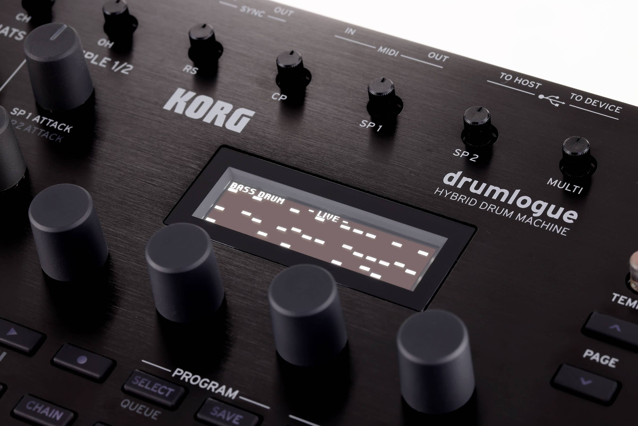 drumlogue is both great in the studio and playing live. With its Chain mode, creating long and interesting patterns is straightforward and clearly displayed. In Loop mode you can switch between several variations to play your sequence in new and interesting ways. The Motion and Accent recording functions are intuitive and fast and if you want to try new things on your track, the Randomization function is there to help you. These functions and many more on the drumlogue will support and spice up your live performances!