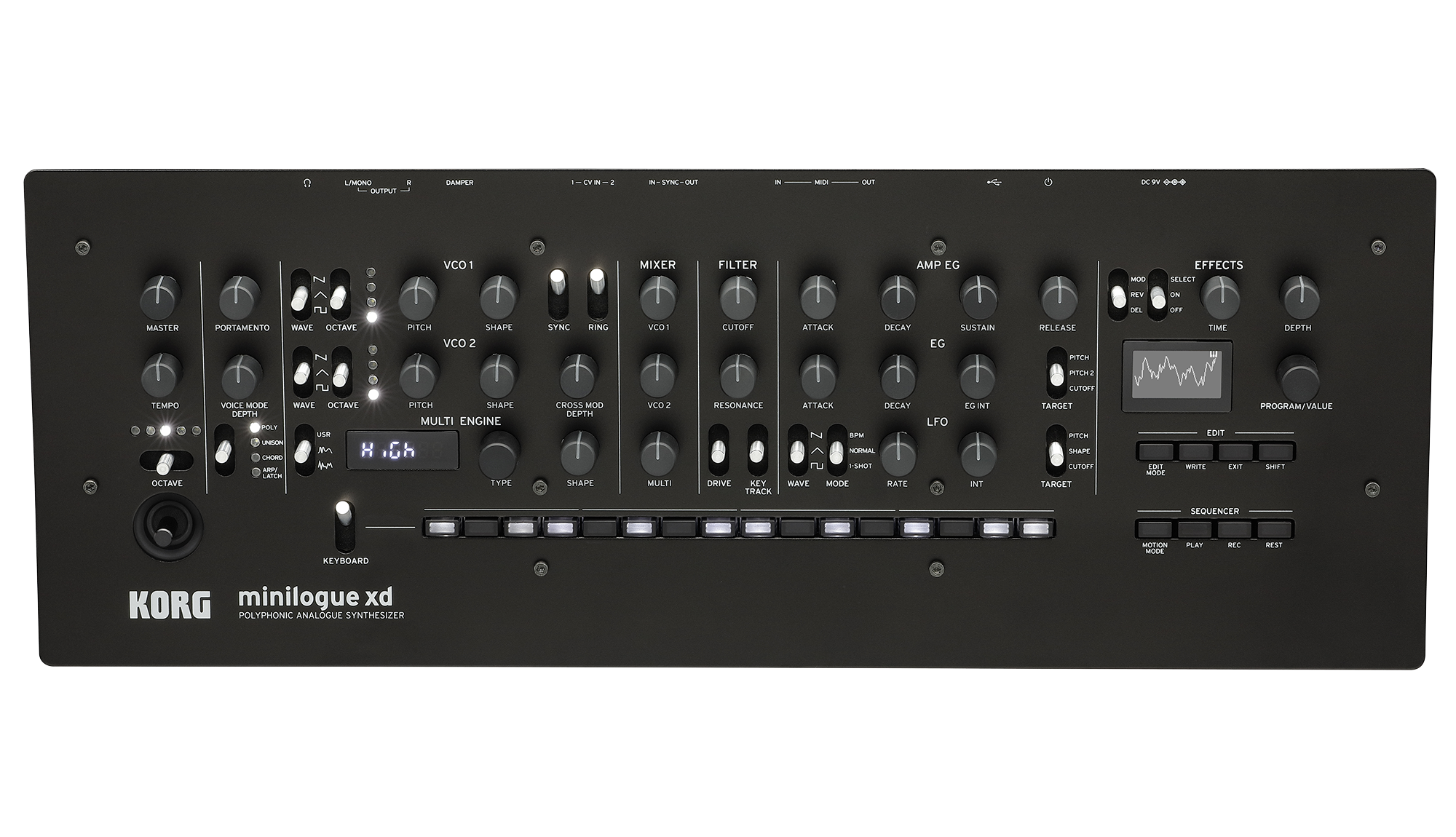 The long-awaited desktop module of KORG’s next-generation analog synthesizer minilogue xd module is the new desktop module version of minilogue xd, the four-voice polyphonic analog synthesizer with a customizable digital multi-engine and built-in stereo digital effects.