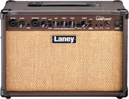 The Laney LA30D is a dual-channel 30W RMS acoustic amplifier combo, ideal for performance and rehearsal.