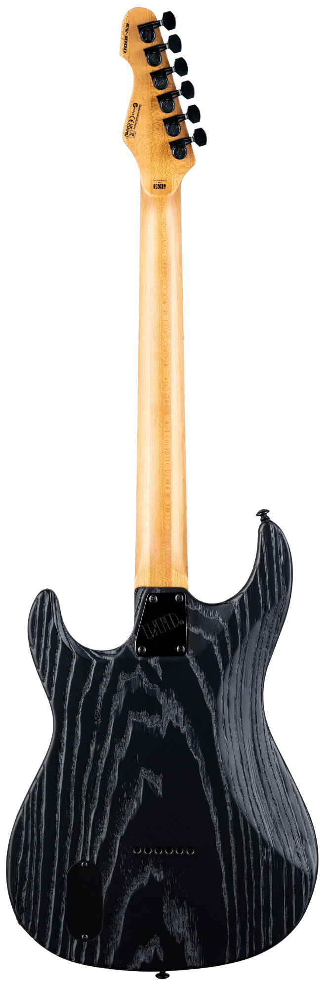 LTD SN-1000HT Silver Blast Guitar The SN-1000HT Silver Blast features a striking sandblasted finish over a swamp ash body, delivering both unique aesthetics and resonant tone. Built with bolt-on construction at a 25.5” scale, it offers a comfortable playing experience, perfect for various musical styles. The roasted maple neck enhances stability and adds a smooth feel for fast playing.