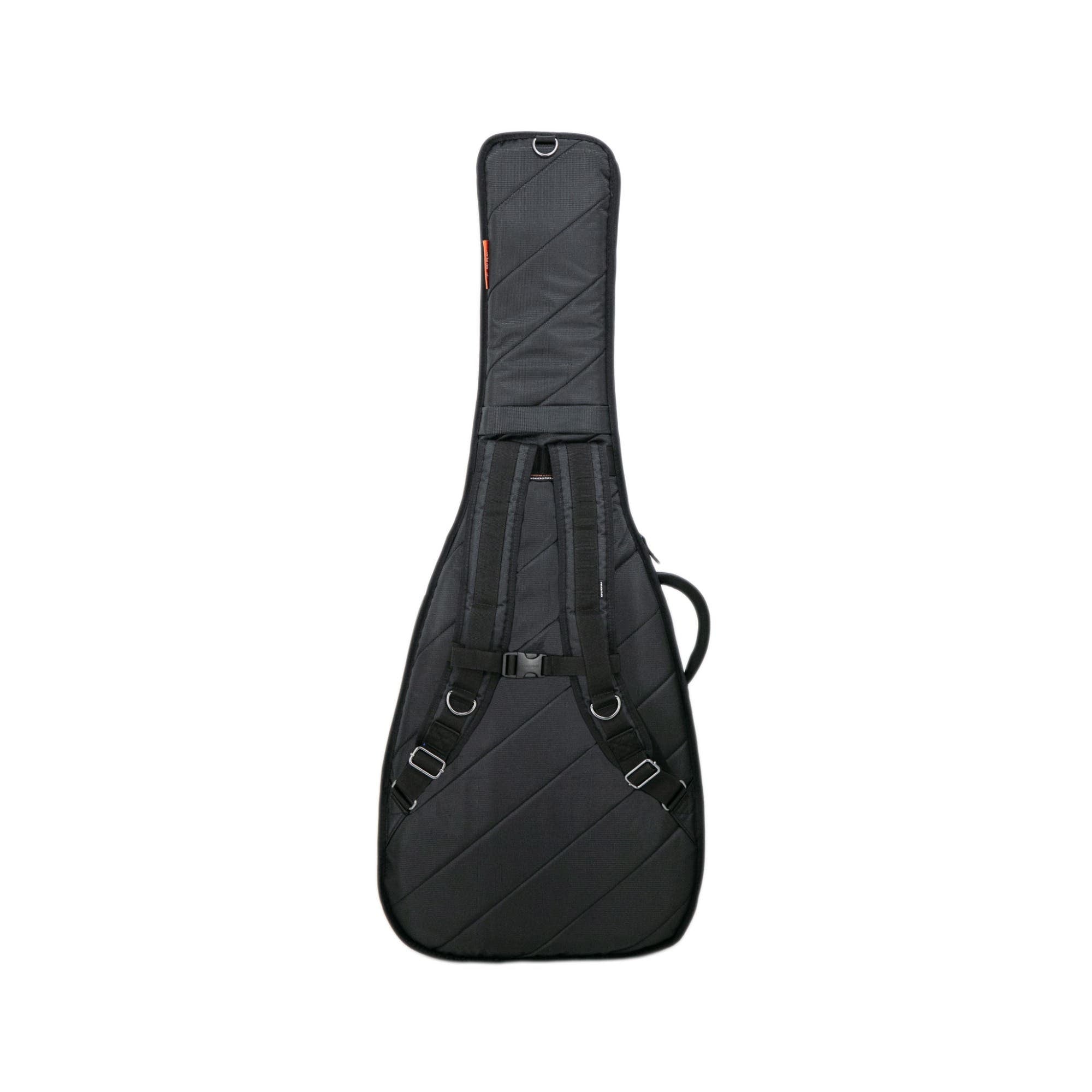 An ergonomically designed case that is slim and suited for urban traveling, along with comfortable shoulder straps and a tactile side handle for easy carrying. Built to military specs, it features a water-resistant 420D shell and plush interior lining, offering extreme resistance to abrasion and the elements. The slimmer Headlock® system, made from shock-absorbing EVA rubber, secures the guitar's neck and headstock, while the EVA insole protects the body and strap pin from impact. Practicality is key, with a spacious front pocket for essentials like laptops and cables, and a small interior mesh pocket for critical items. Side-release chest buckles provide added security, and the construction is reinforced with steel rivets for extra durability. Rock-solid, industrial webbing handles are standard in MONO cases. Bar-tack stitching and steel rivets reinforce strength, while high-grade webbing offers a comfortable grip. String guard protection to safeguard your guitar’s strings.